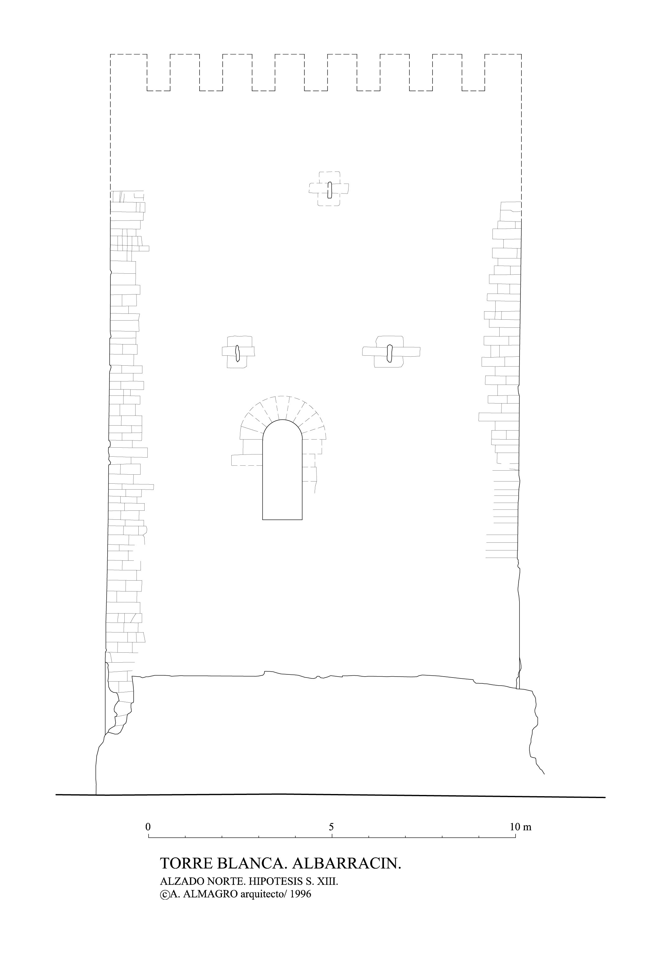 Murallas de Albarracín (Teruel) - Torre Blanca. Alzado N hipótesis
