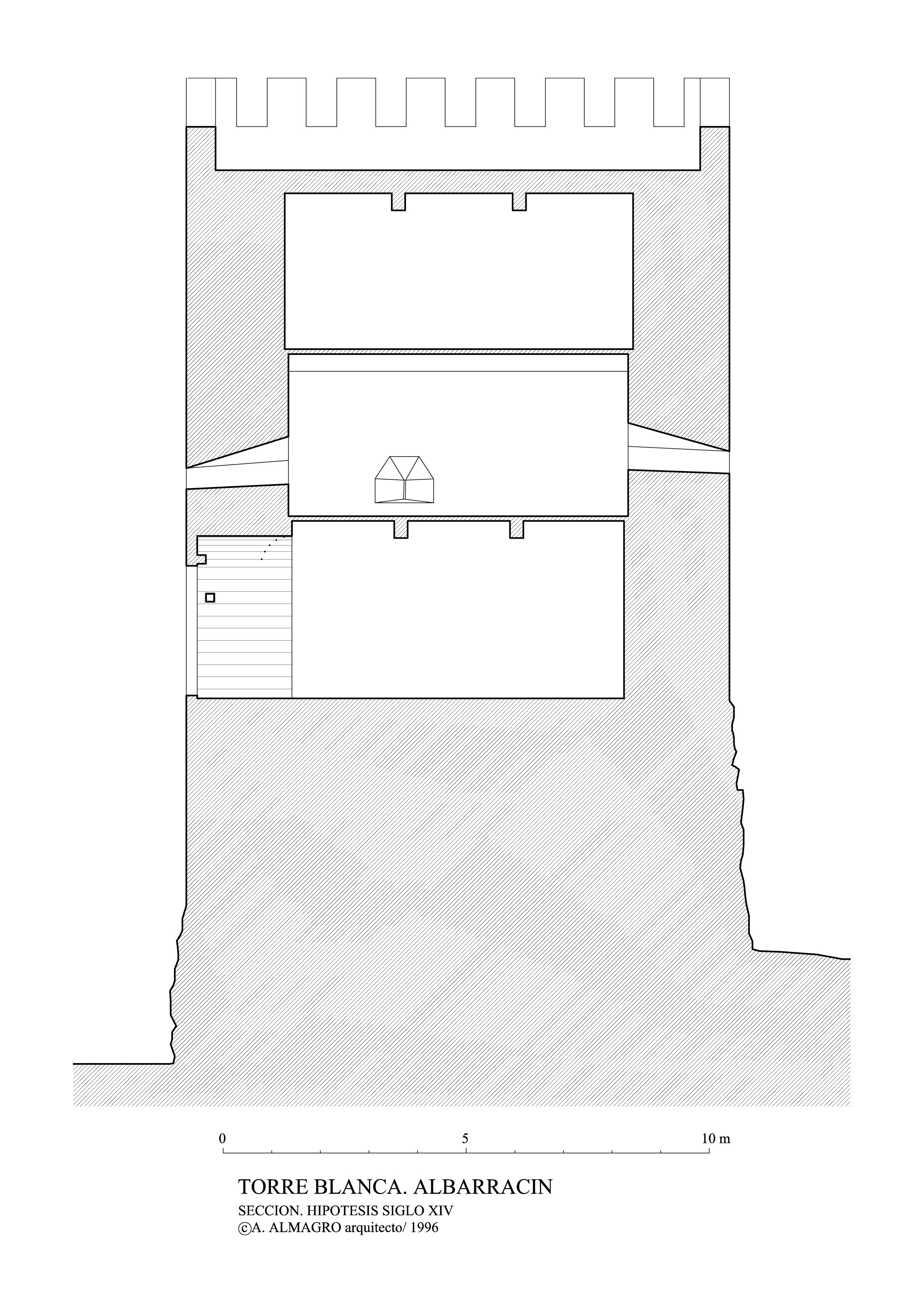 Murallas de Albarracín (Teruel) - Torre Blanca. Sección hipótesis