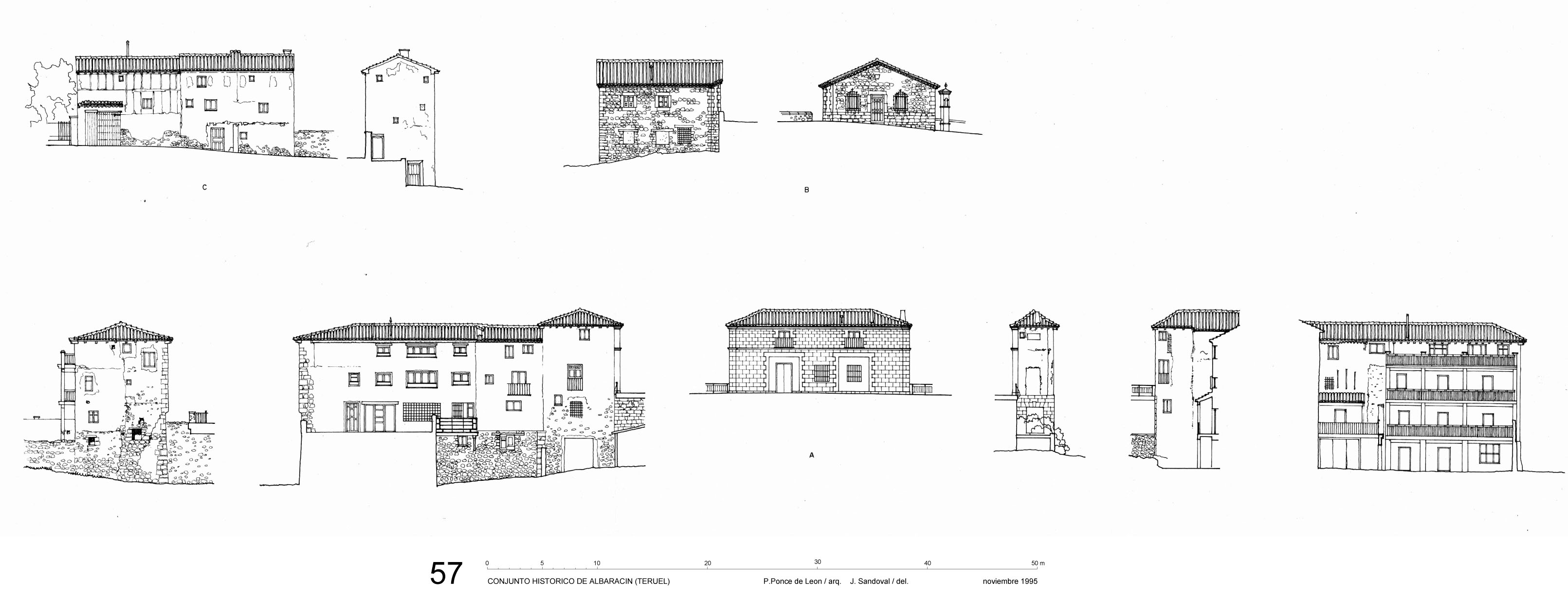 Alzados de edificios junto al Puente del Arrabal - Conjunto histórico de Albarracín (Teruel)