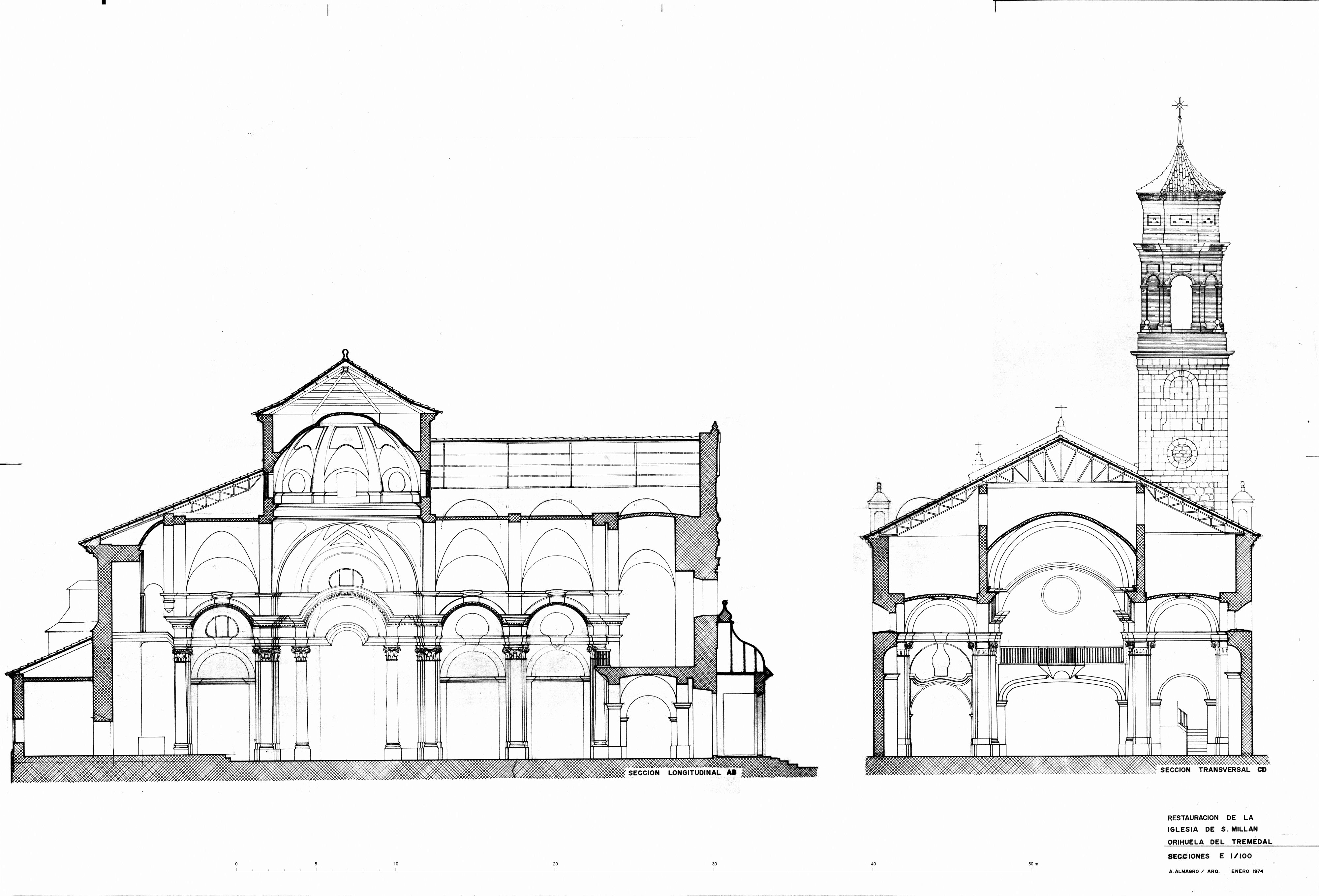 Secciones de la iglesia de San Millán en Orihuela del Tremedal (Teruel) - Estado restaurado