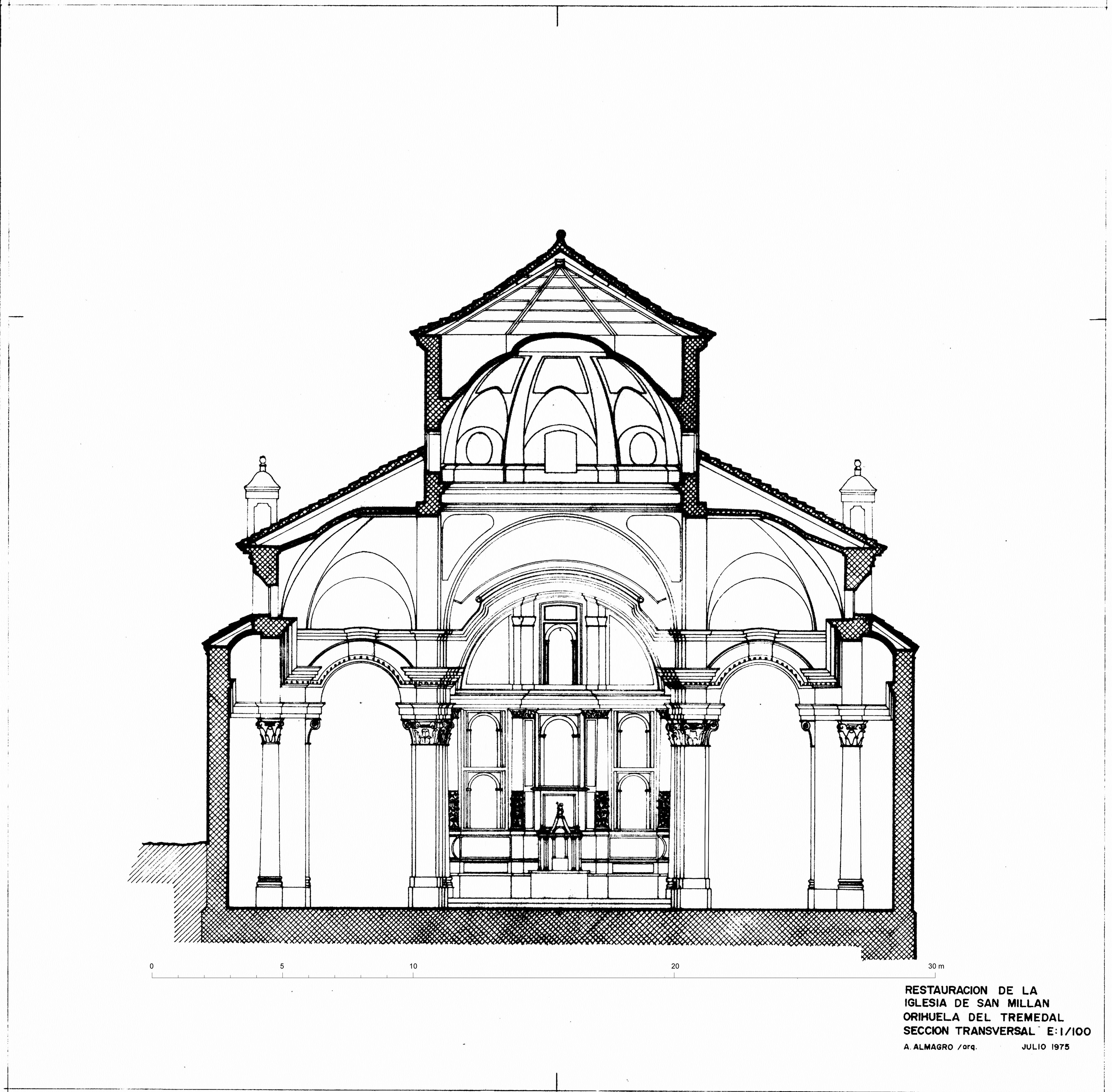 Sección por crucero de la iglesia de San Millán en Orihuela del Tremedal (Teruel) - Estado restaurado