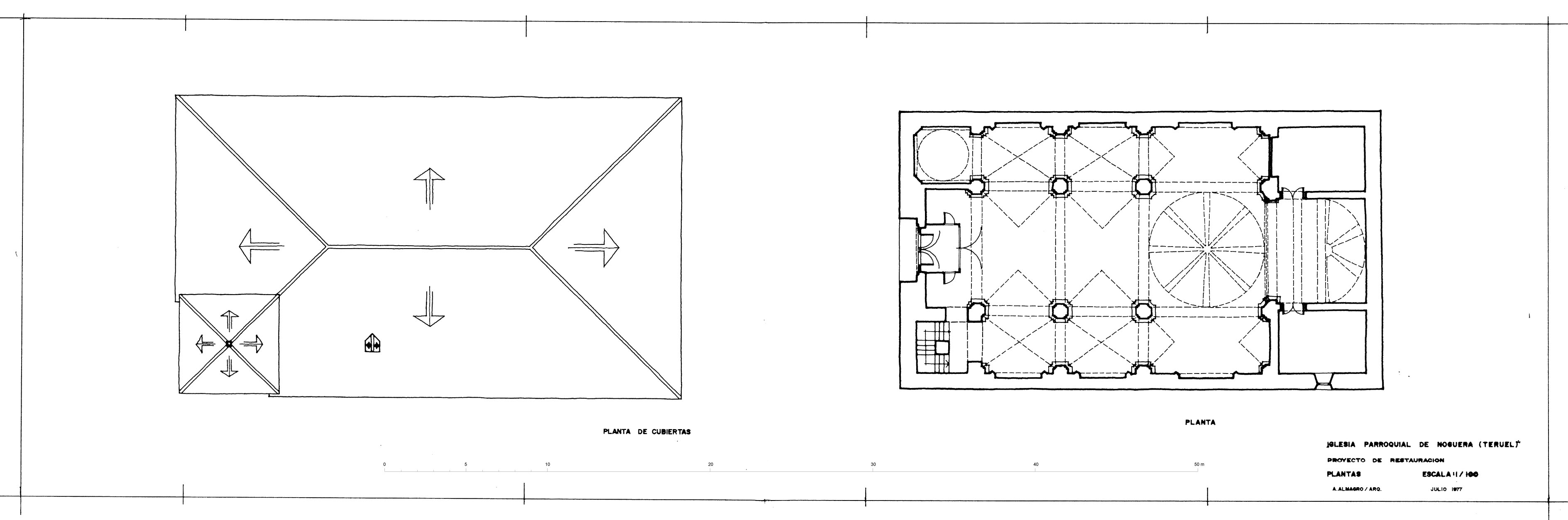 Planta baja y de cubiertas de la iglesia parroquial de Noguera (Teruel)