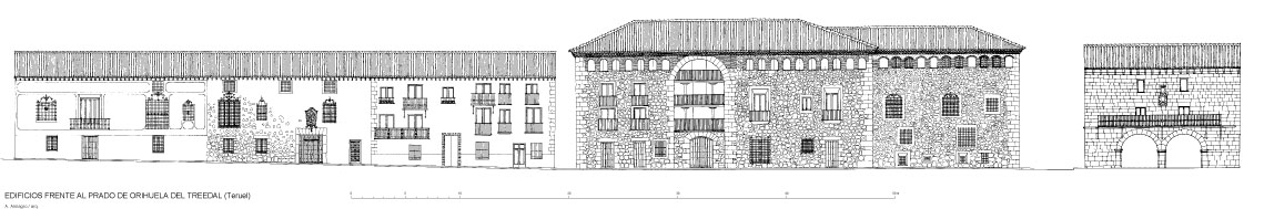 Alzado de construcciones hacia el antiguo prado en Orihuela del Tremedal (Teruel)