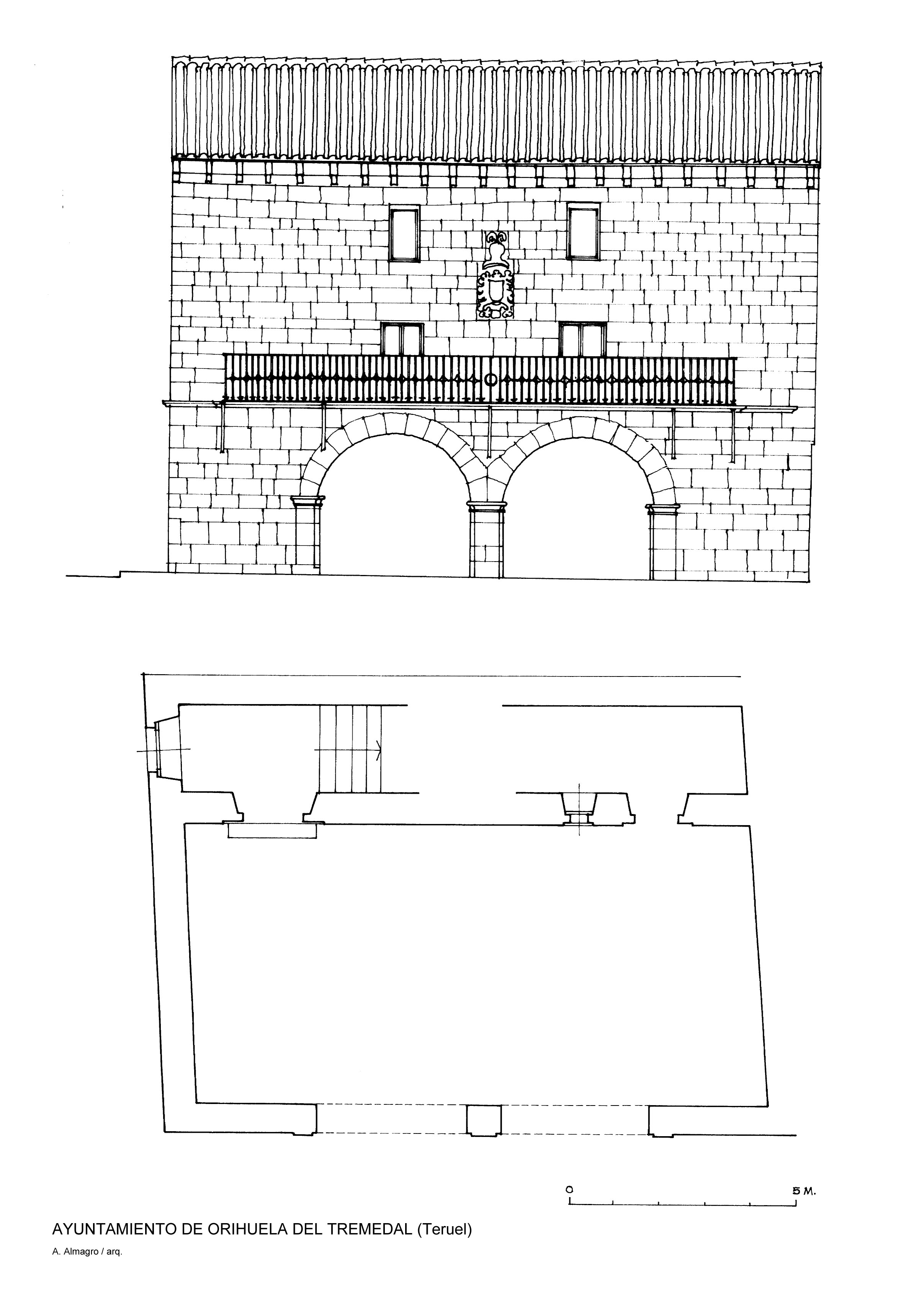 Planta y alzado del Ayuntamiento de Orihela del Tremedal (Teruel)