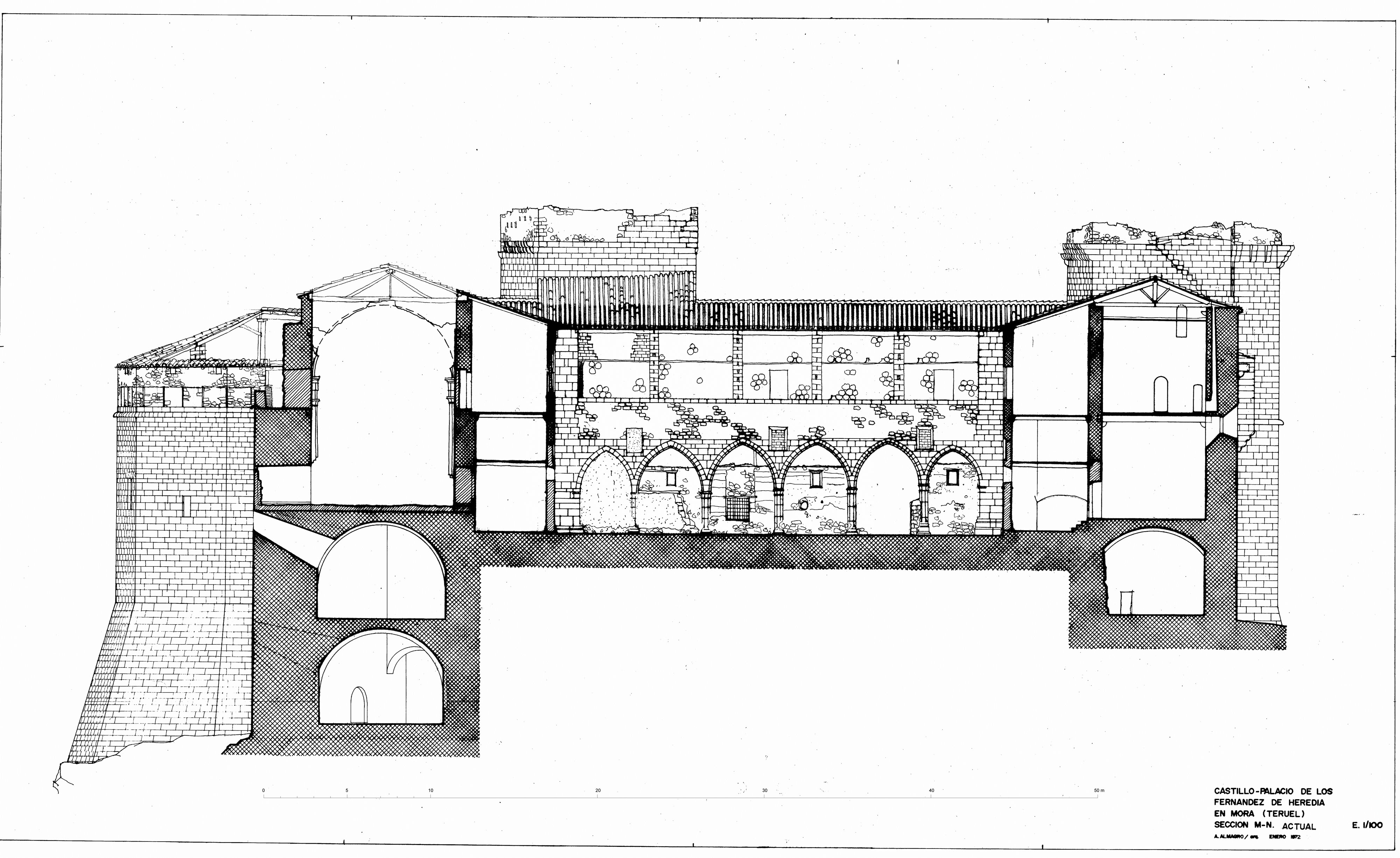 Sección por sótanos del castillo de Mora de Rubielo (Teruel) - Estado inicial 1972