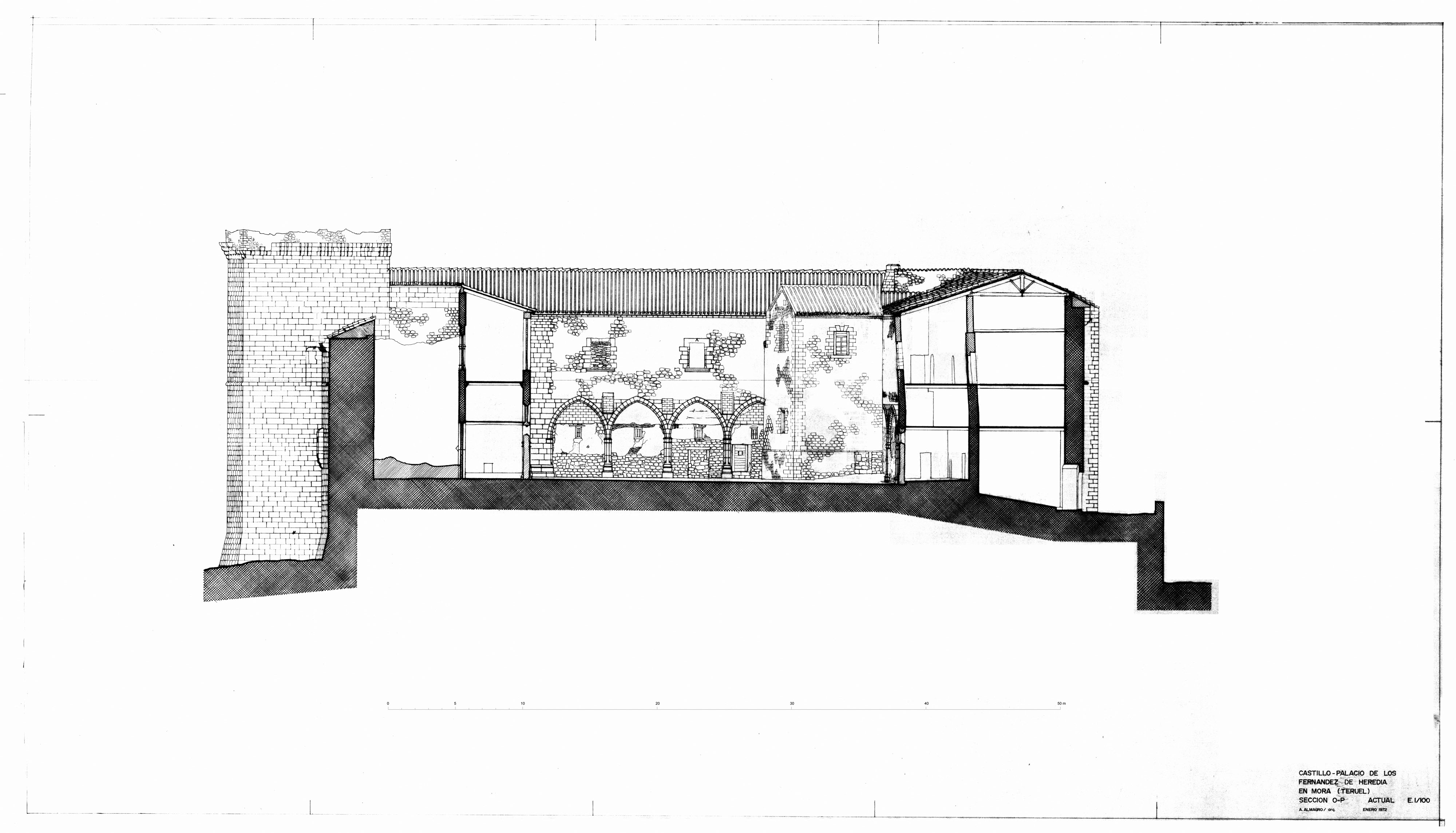Sección por puerta del castillo de Mora de Rubielo (Teruel) - Estado inicial 1972