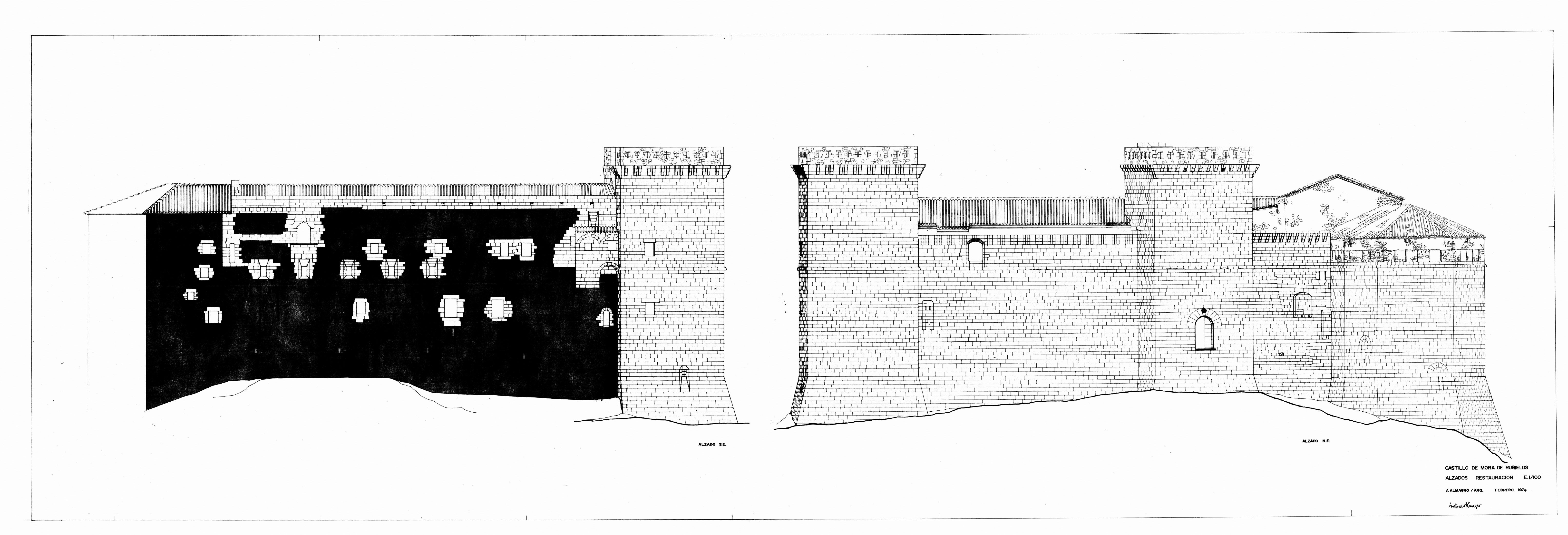 Alzados sureste y noreste del castillo de Mora de Rubielo (Teruel) - Propuesta restauración