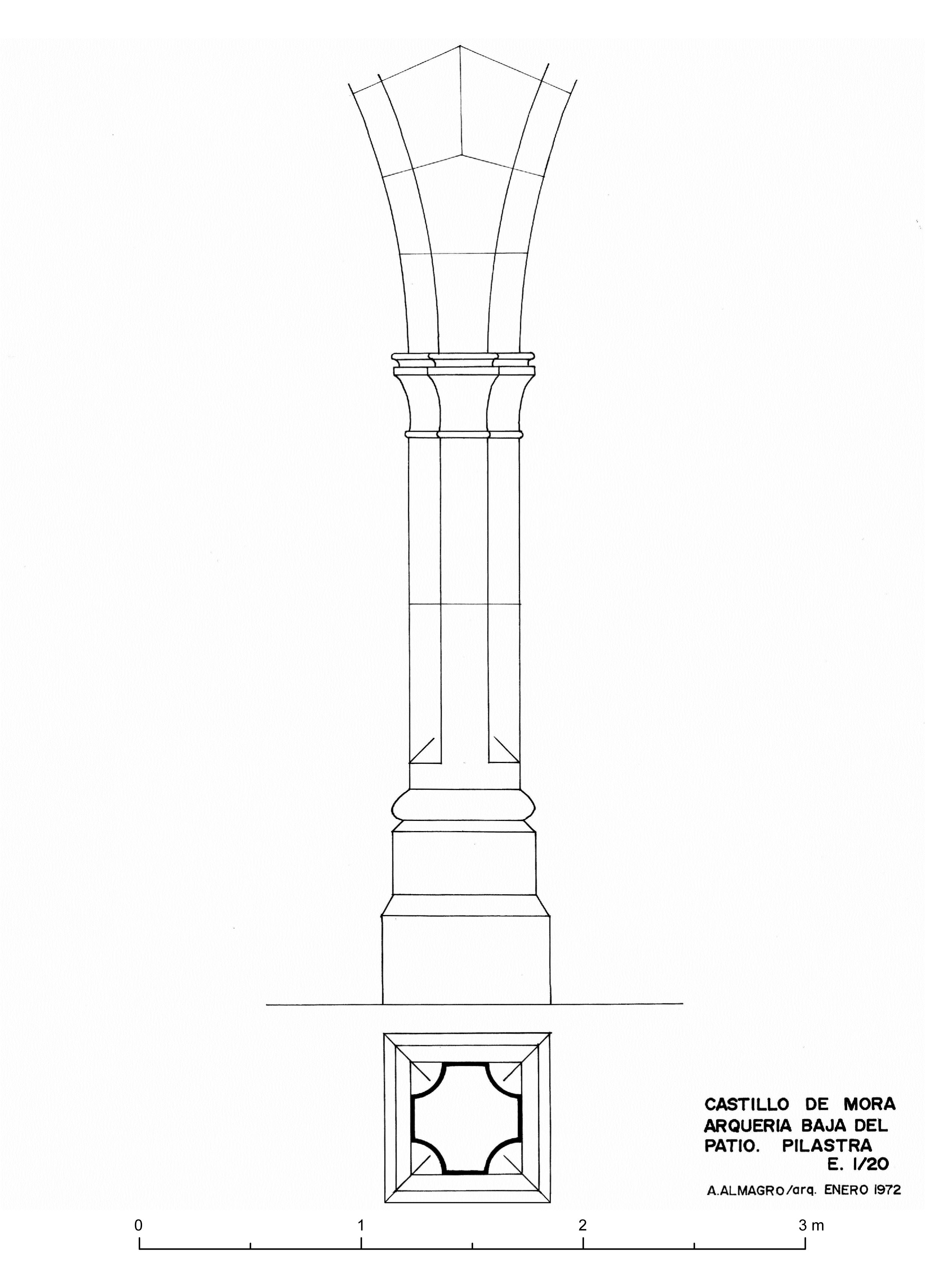 Detalle del pilar de la arquería baja del patio del castillo de Mora de Rubielos (Teruel)