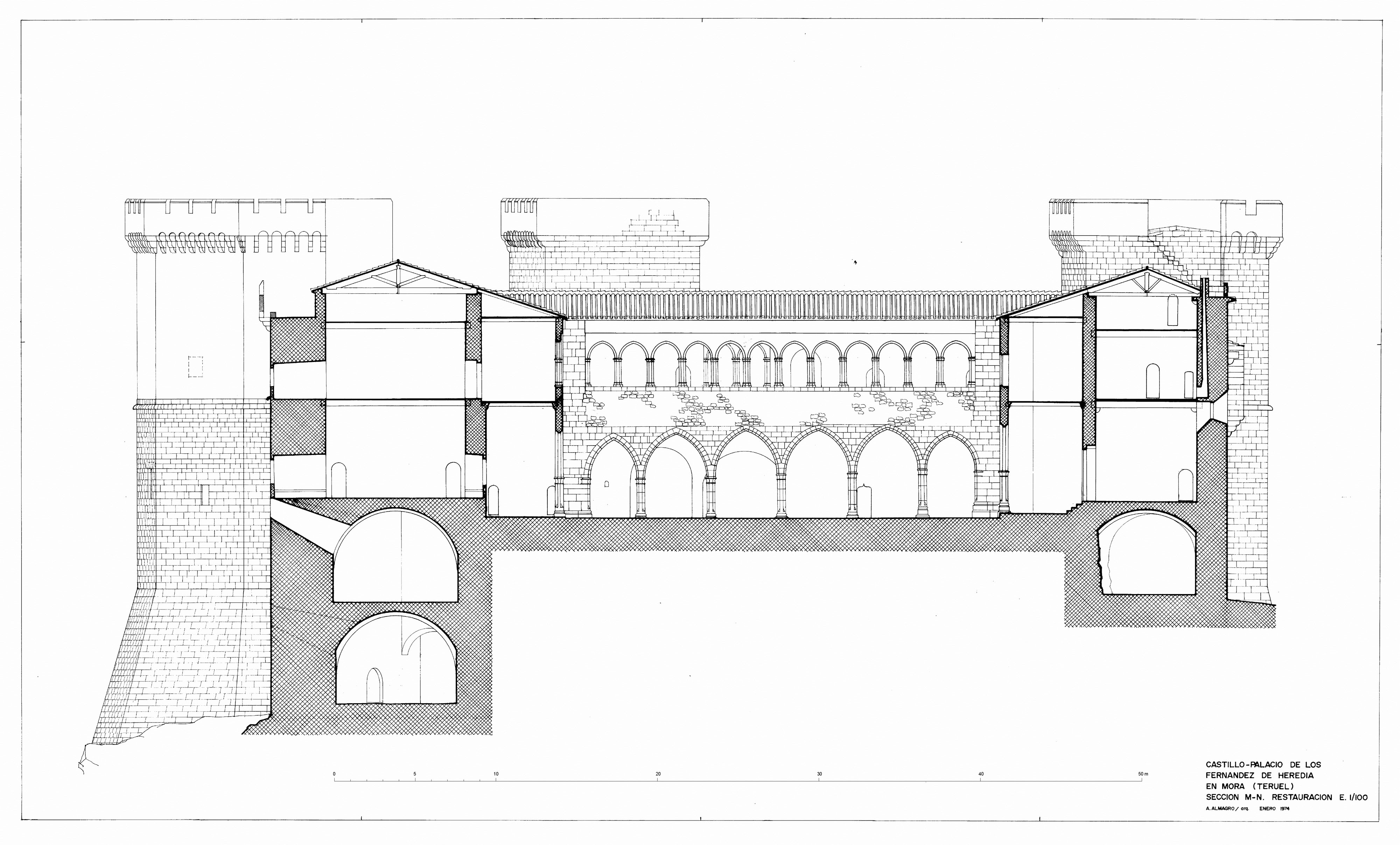 Sección por sótanos del castillo de Mora de Rubielo (Teruel) - Hipótesis