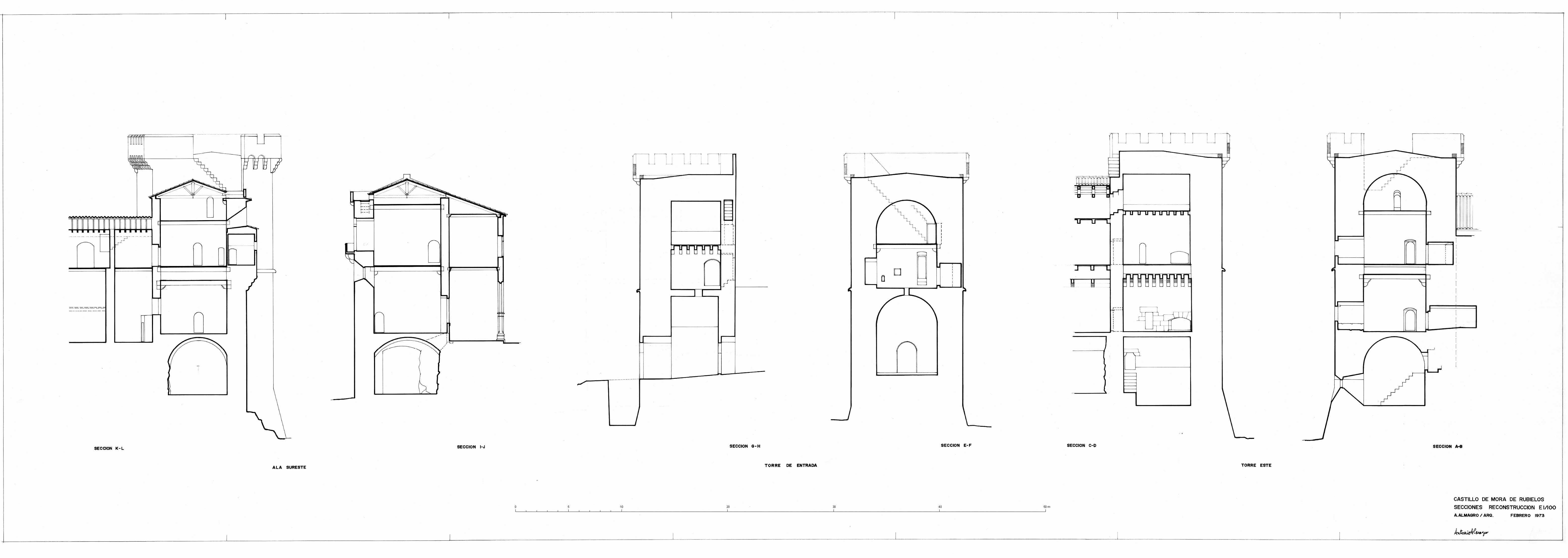 Secciones de torres y ala sureste del castillo de Mora de Rubielos (Teruel) - Hipótesis