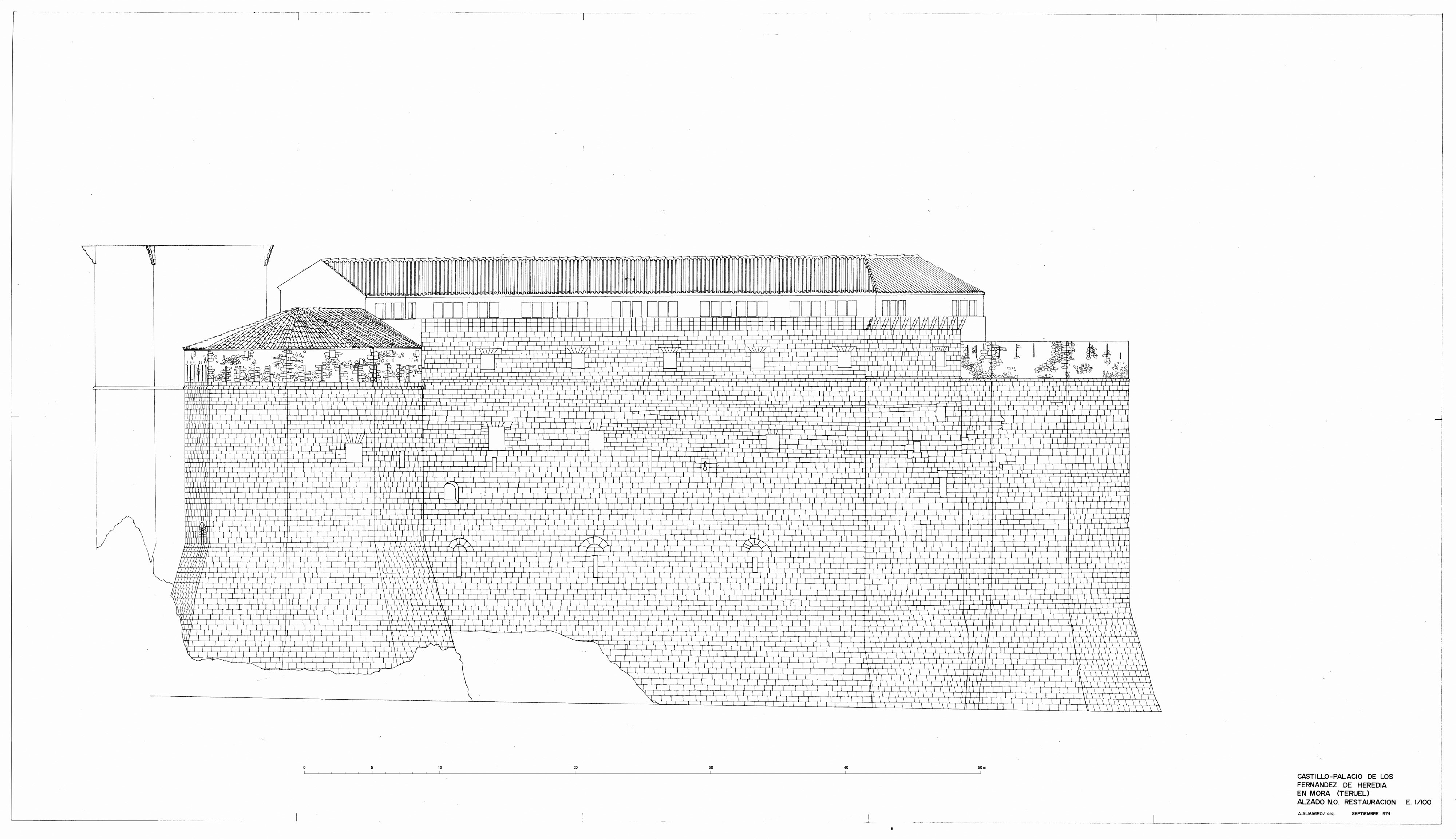 Alzado noroeste del castillo de Mora de Rubielo (Teruel) - Estado restaurado