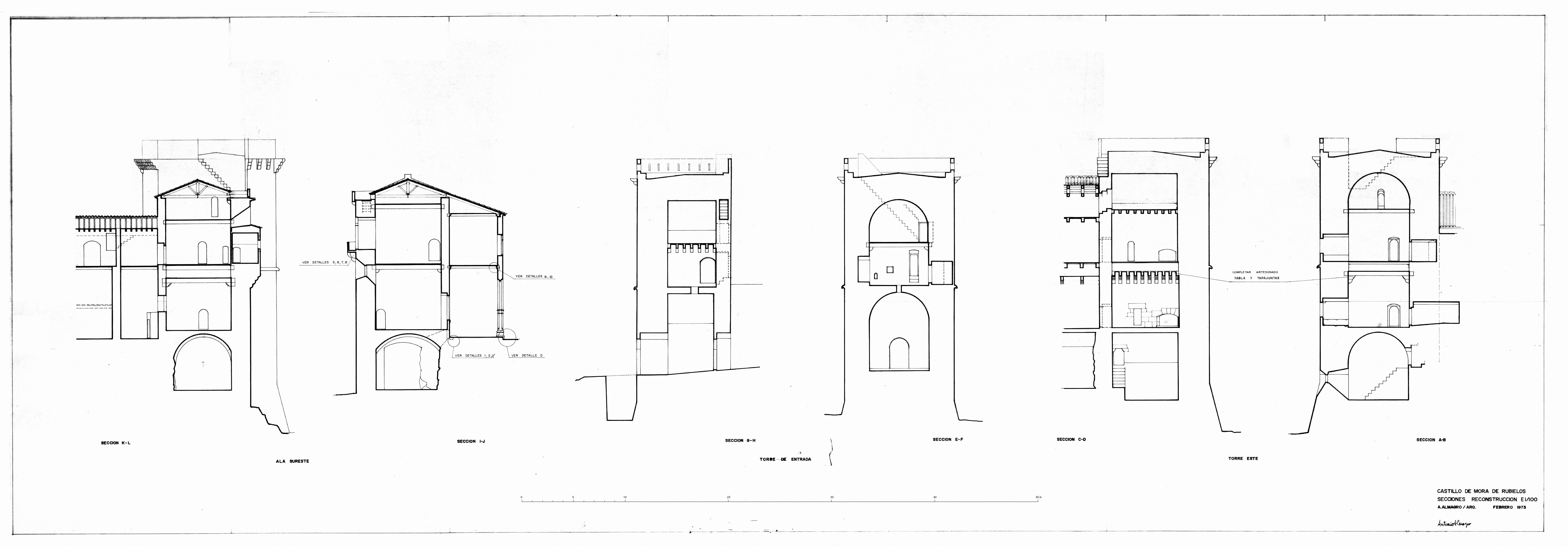 Secciones de torres y ala sureste del castillo de Mora de Rubielos (Teruel) - Restauración