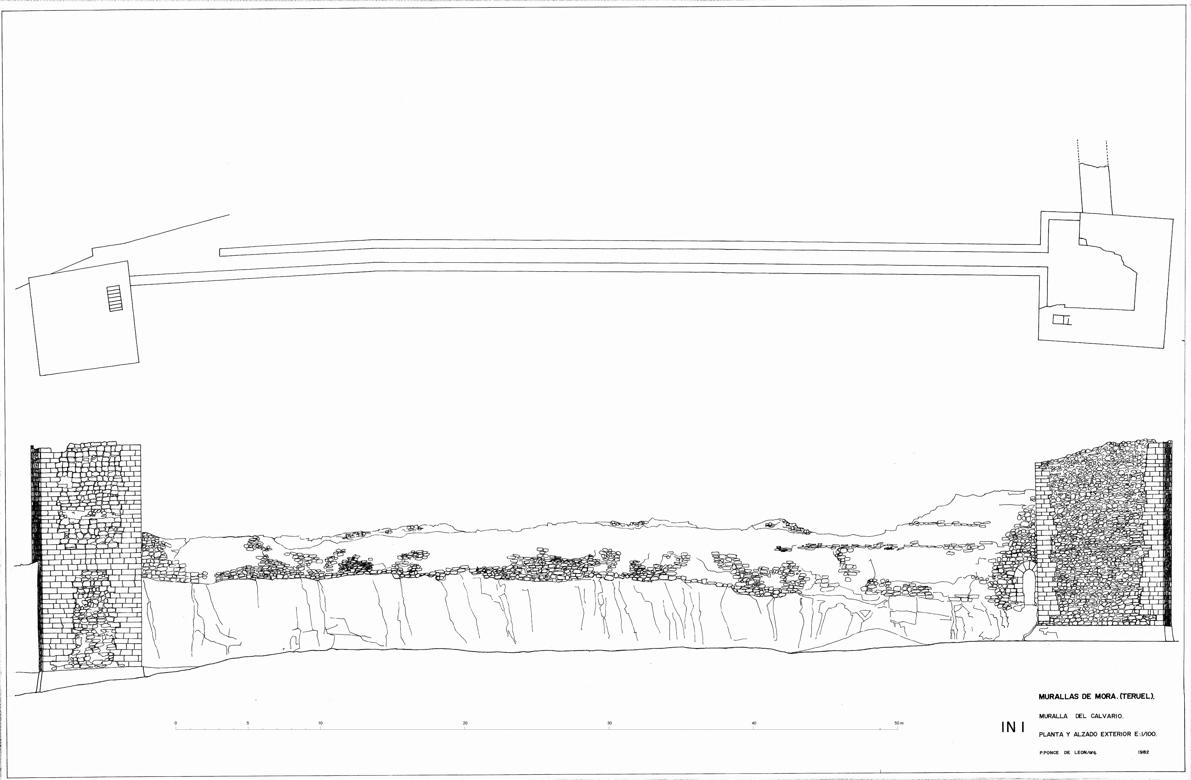 Alzado sureste de la muralla del Calvario de Mora de Rubielos (Teruel) - Estado incial