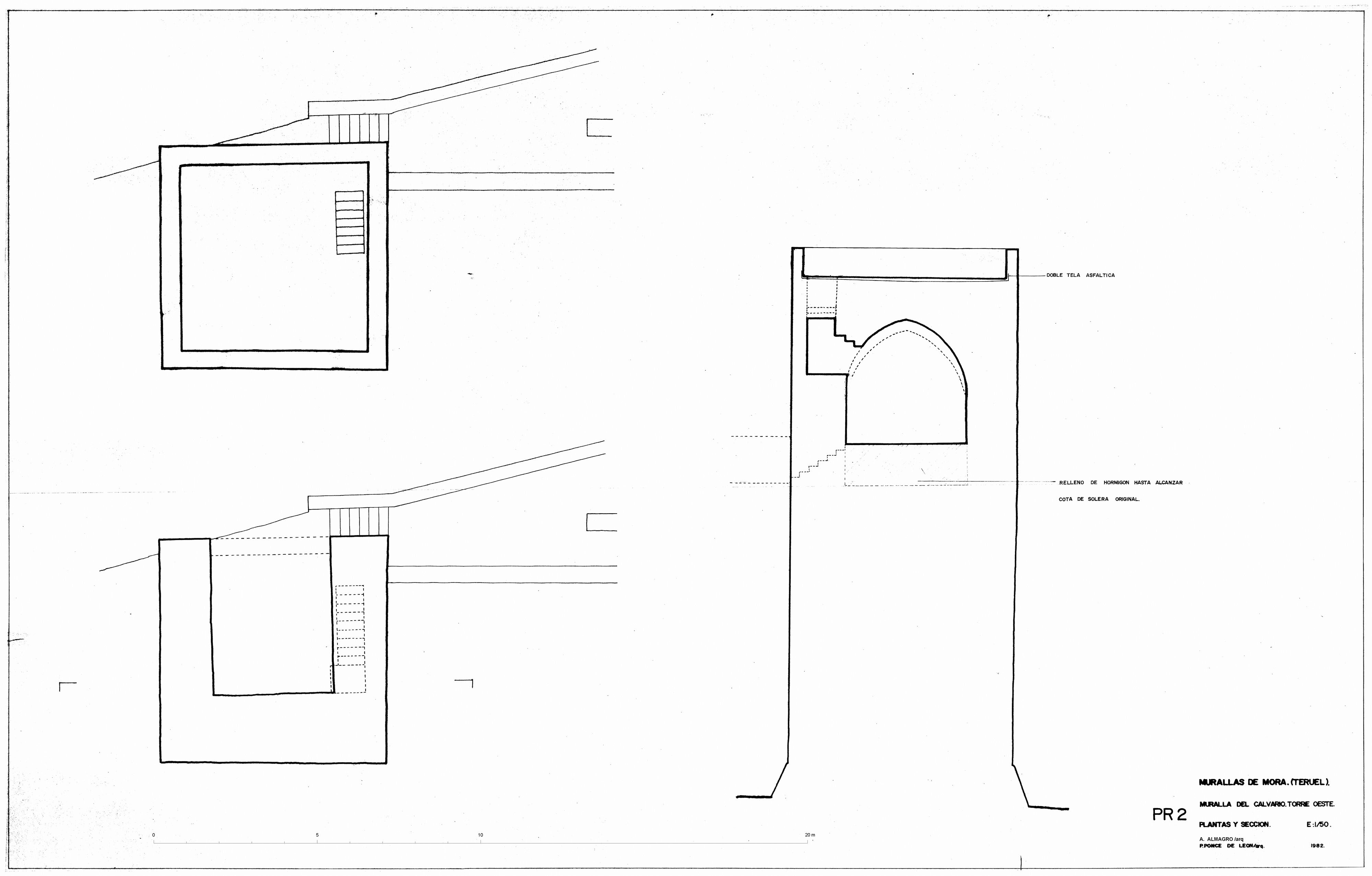 Planta y secciones de la torre oeste de la muralla del Calvario de Mora de Rubielos (Teruel) - Estado restaurado