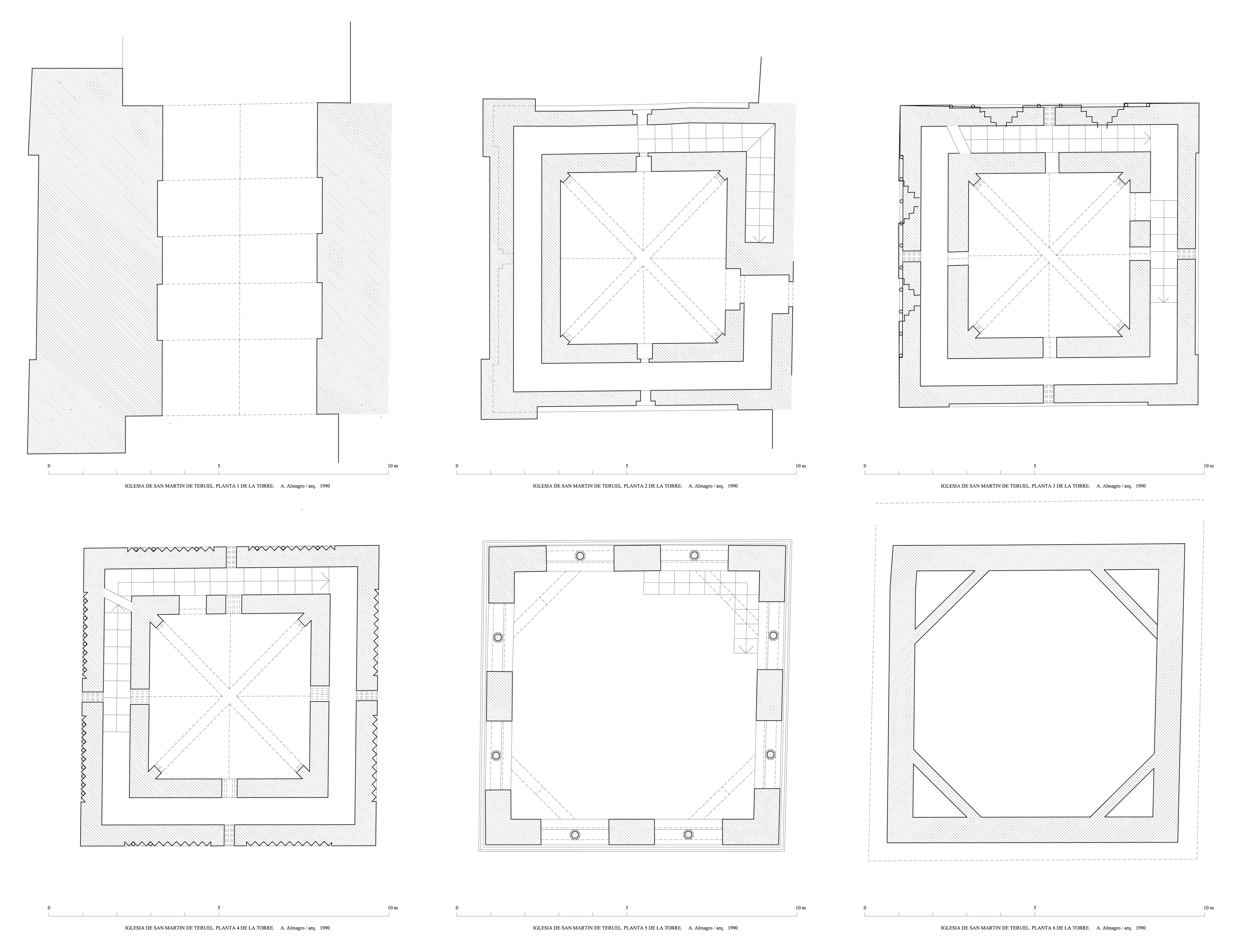 Plantas de la torre de la iglesia de San Martín de Teruel