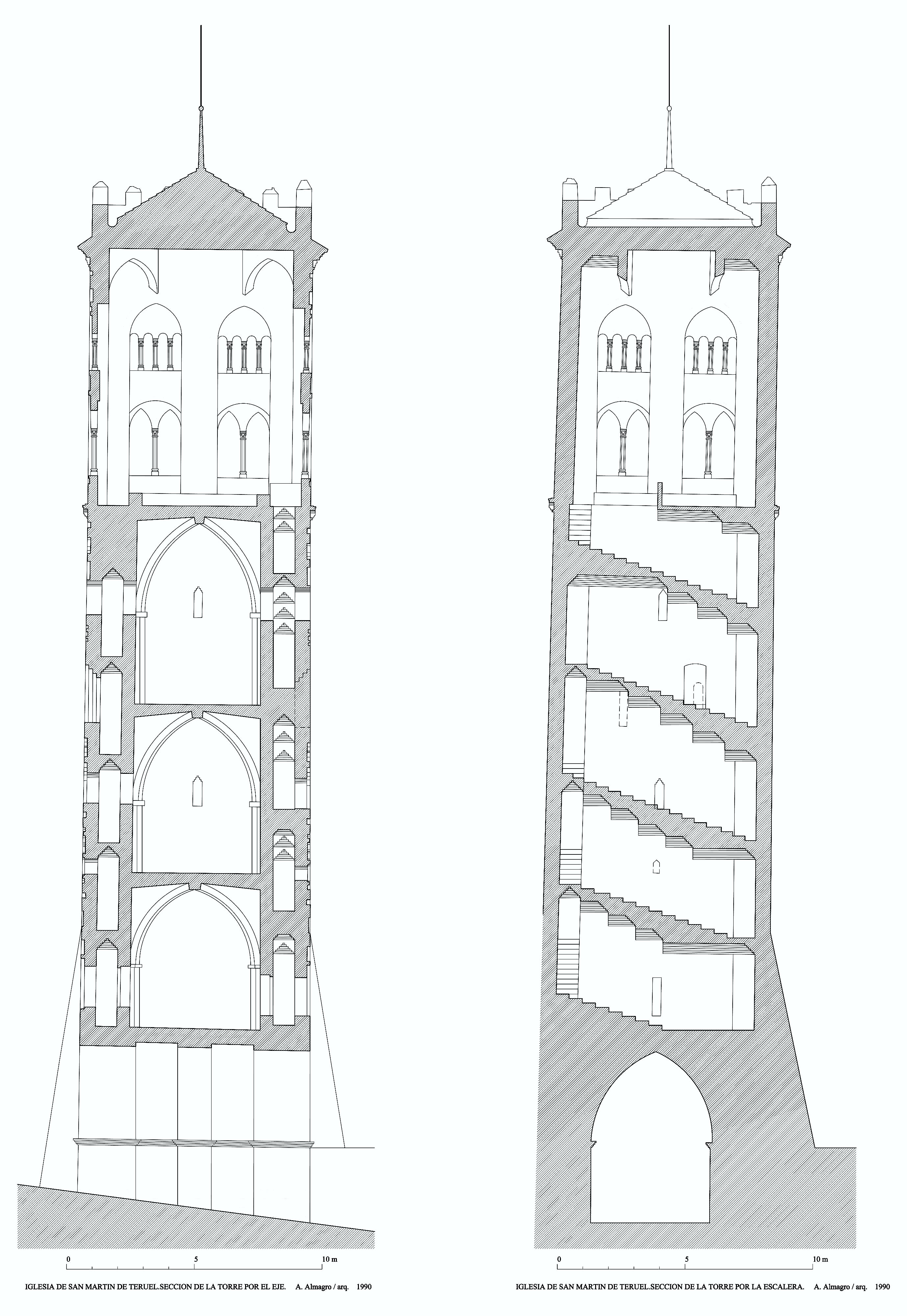 Secciones de la torre de la iglesia de San Martín de Teruel