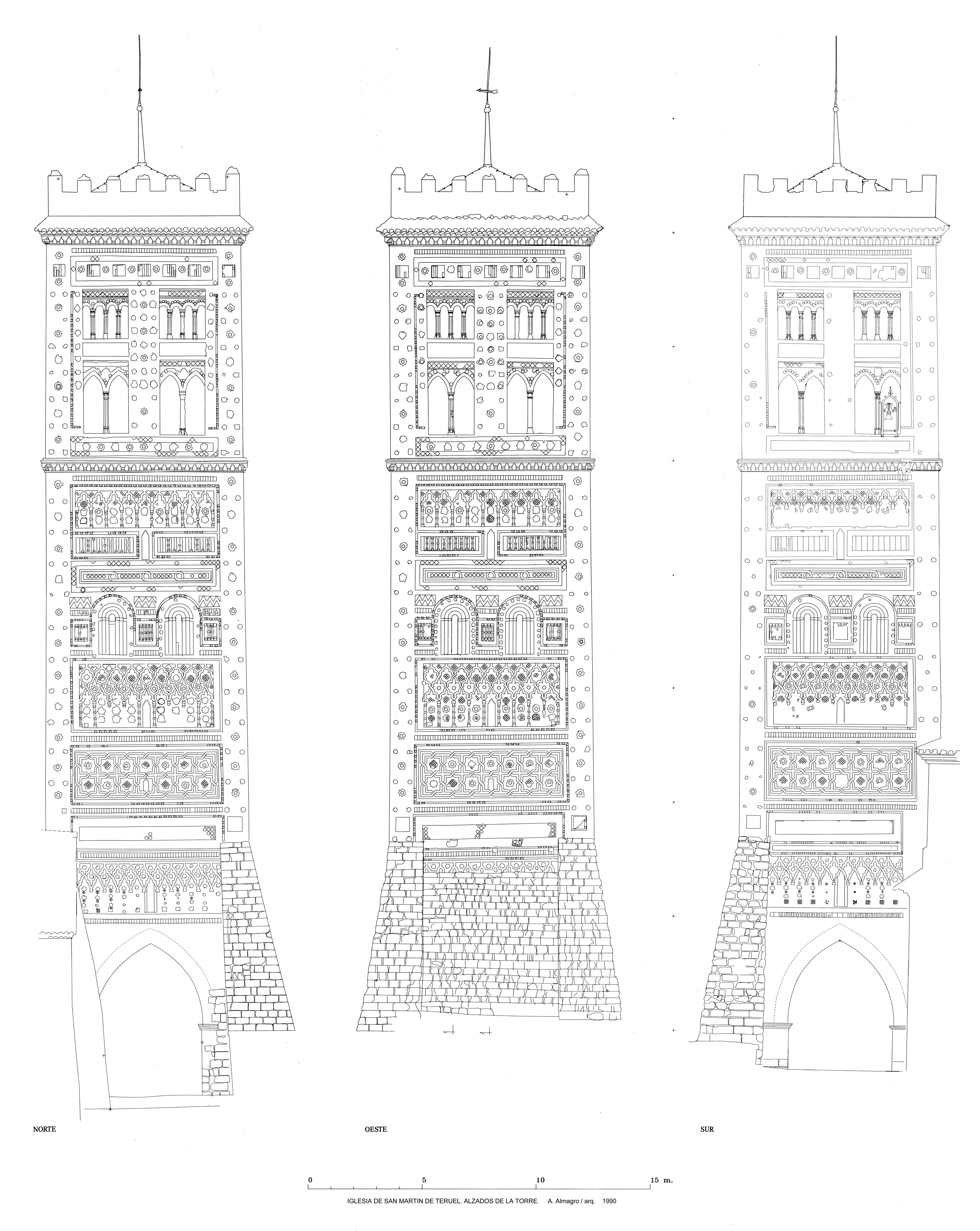 Alzados de la torre de la iglesia de San Martín de Teruel