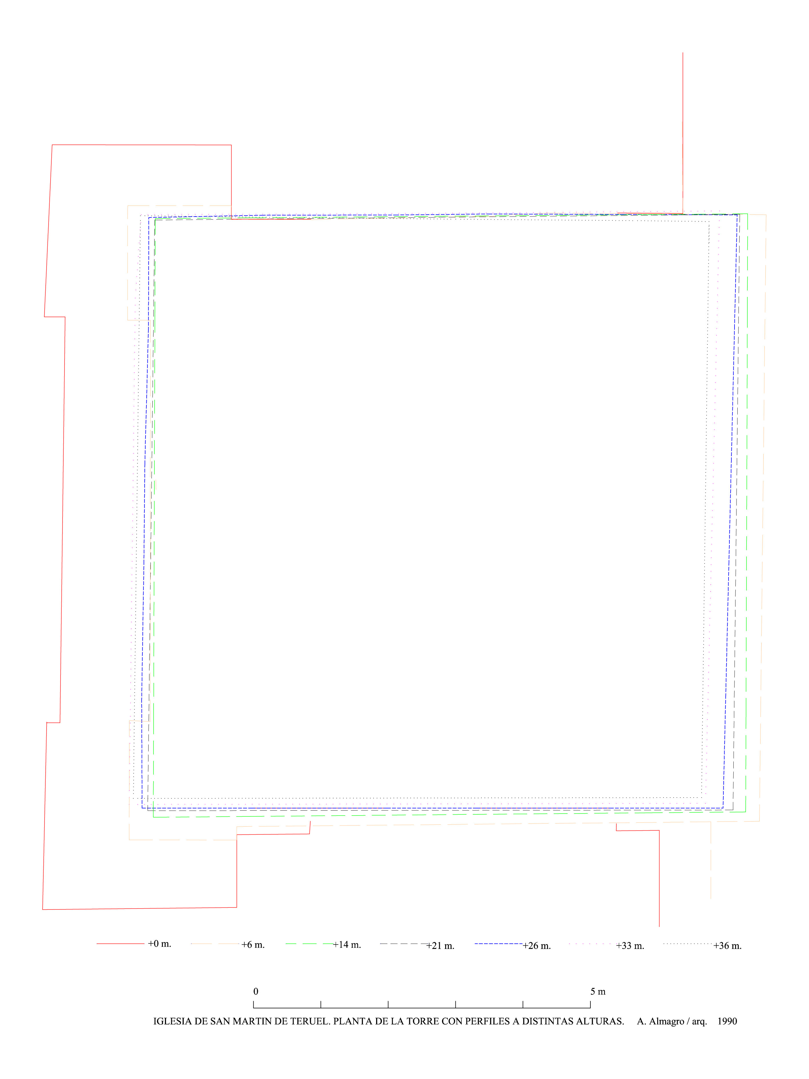 Perfiles a distintas alturas de la torre de la iglesia de San Martín de Teruel