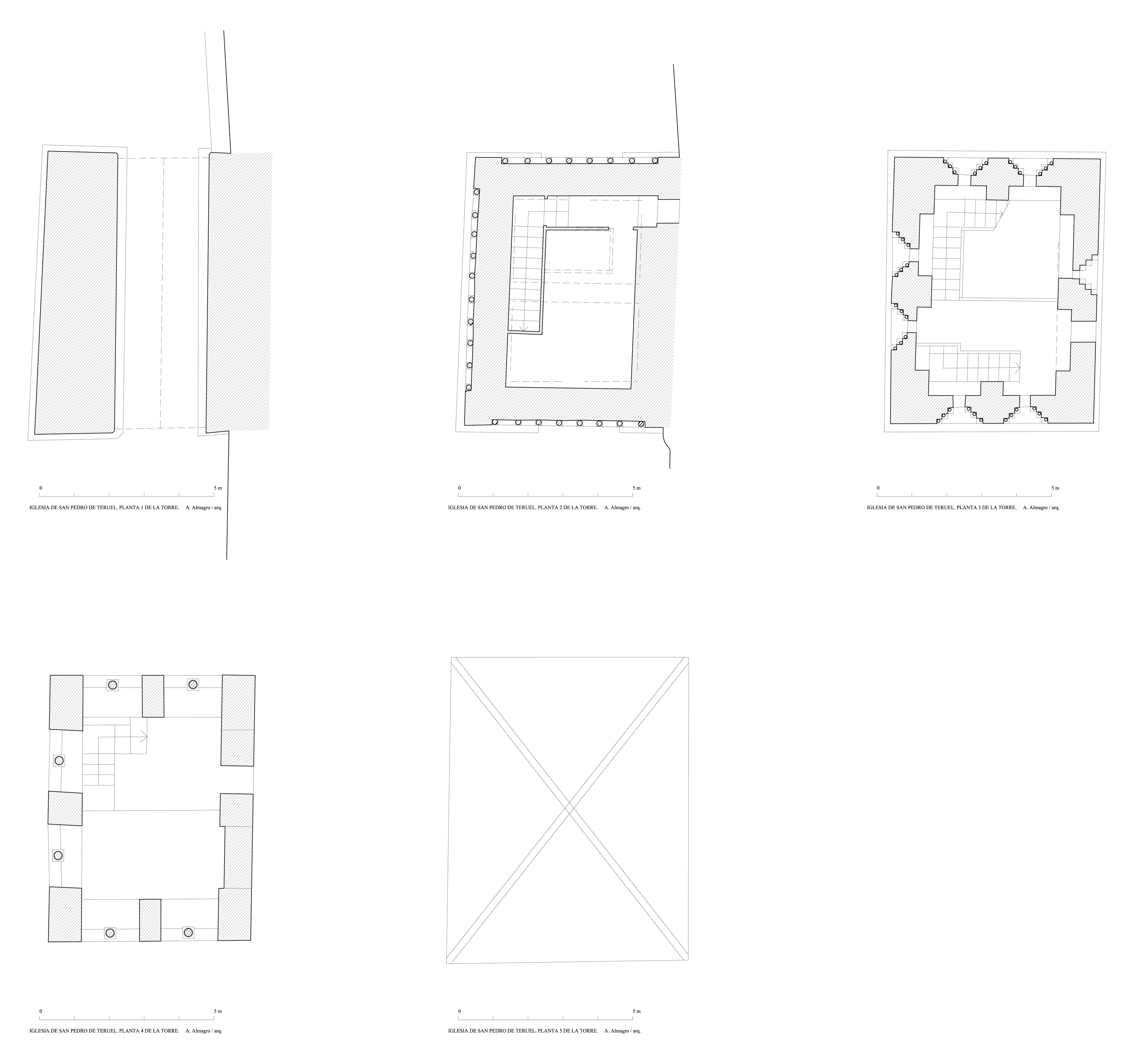 Plantas de la torre de la iglesia de San Pedro de Teruel