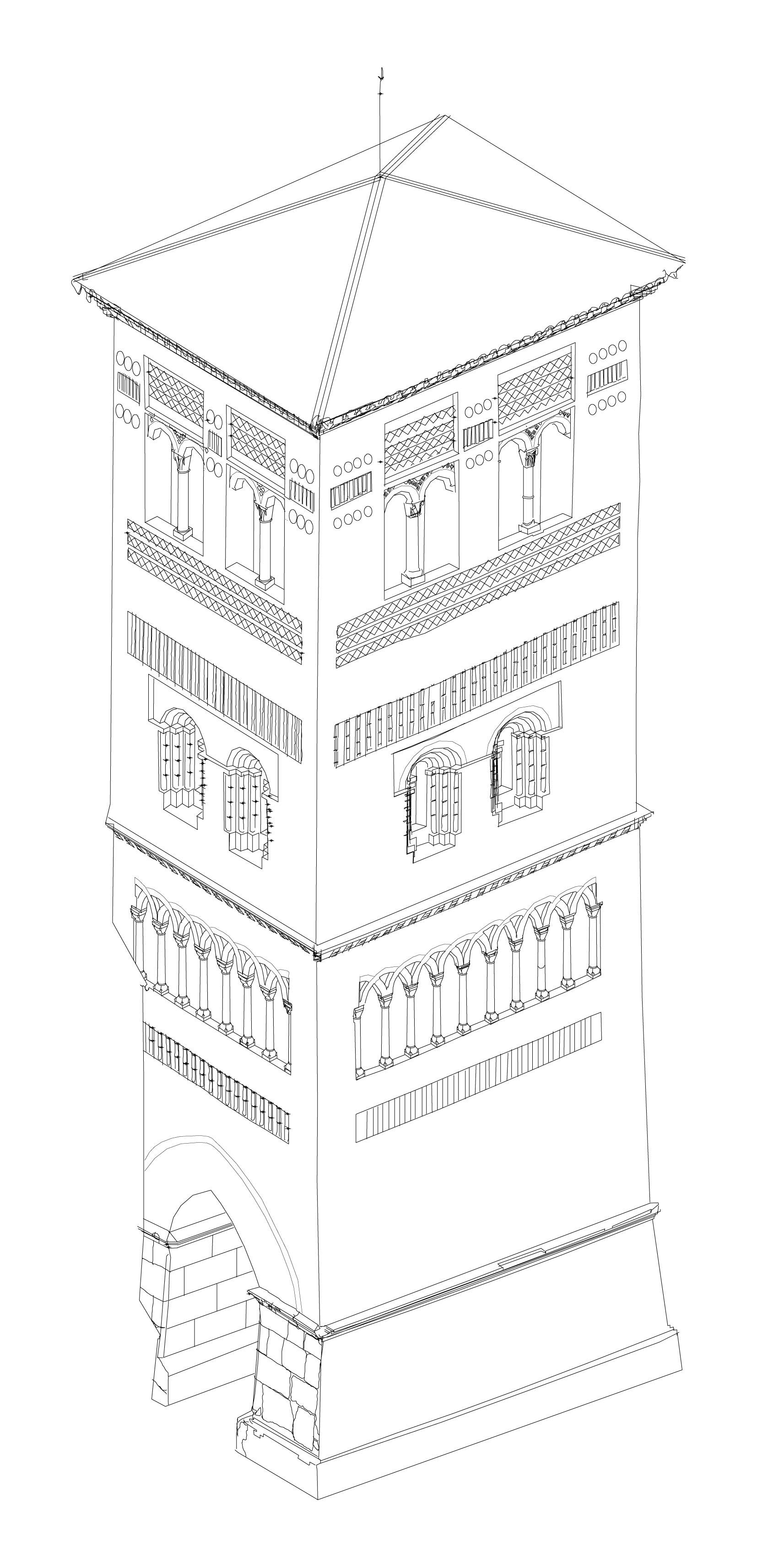Axonométrica de la torre de la iglesia de San Pedro de Teruel