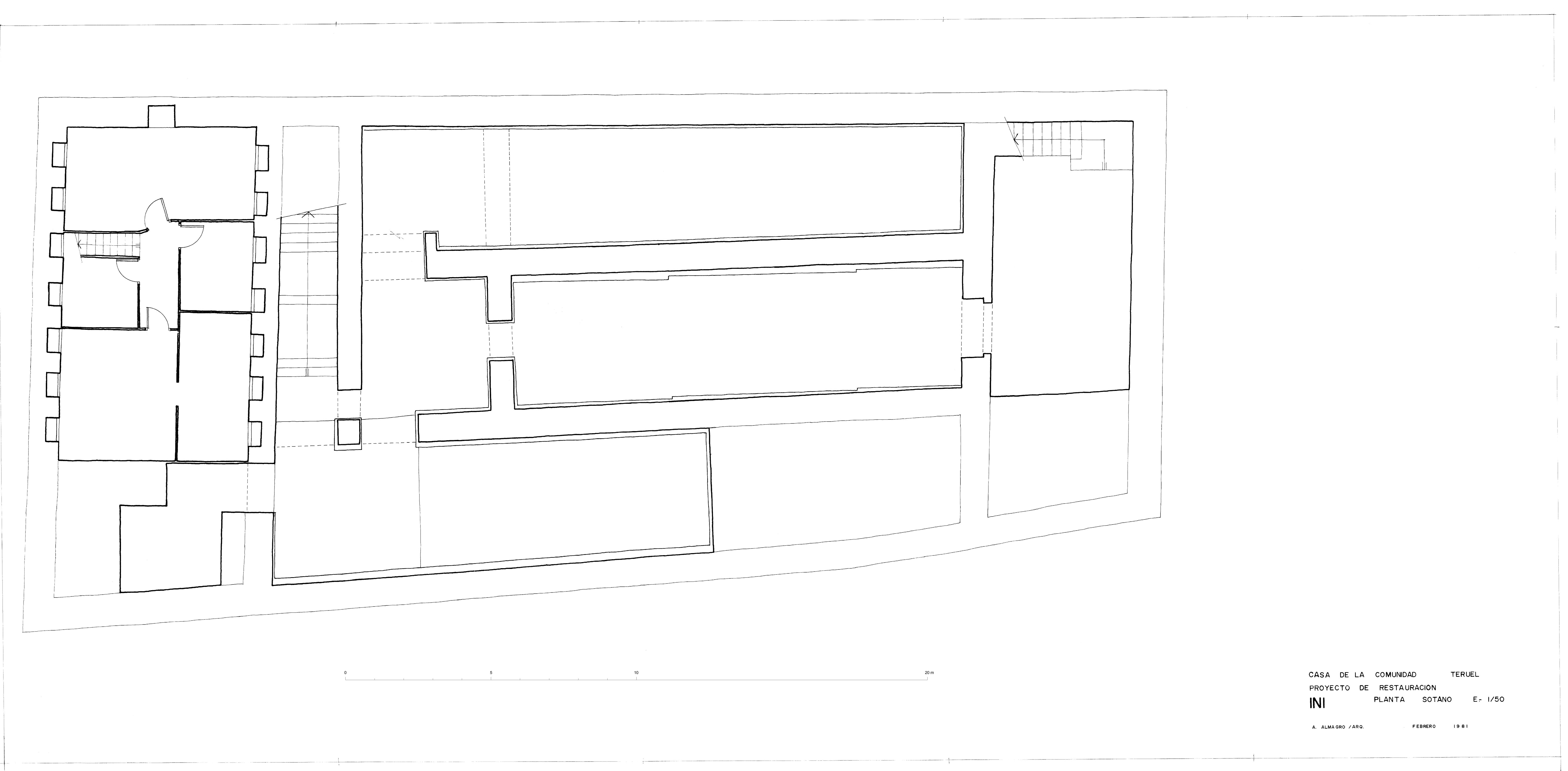 Planta sótano de la Casa de la Comunidad de Teruel. Estado inicial