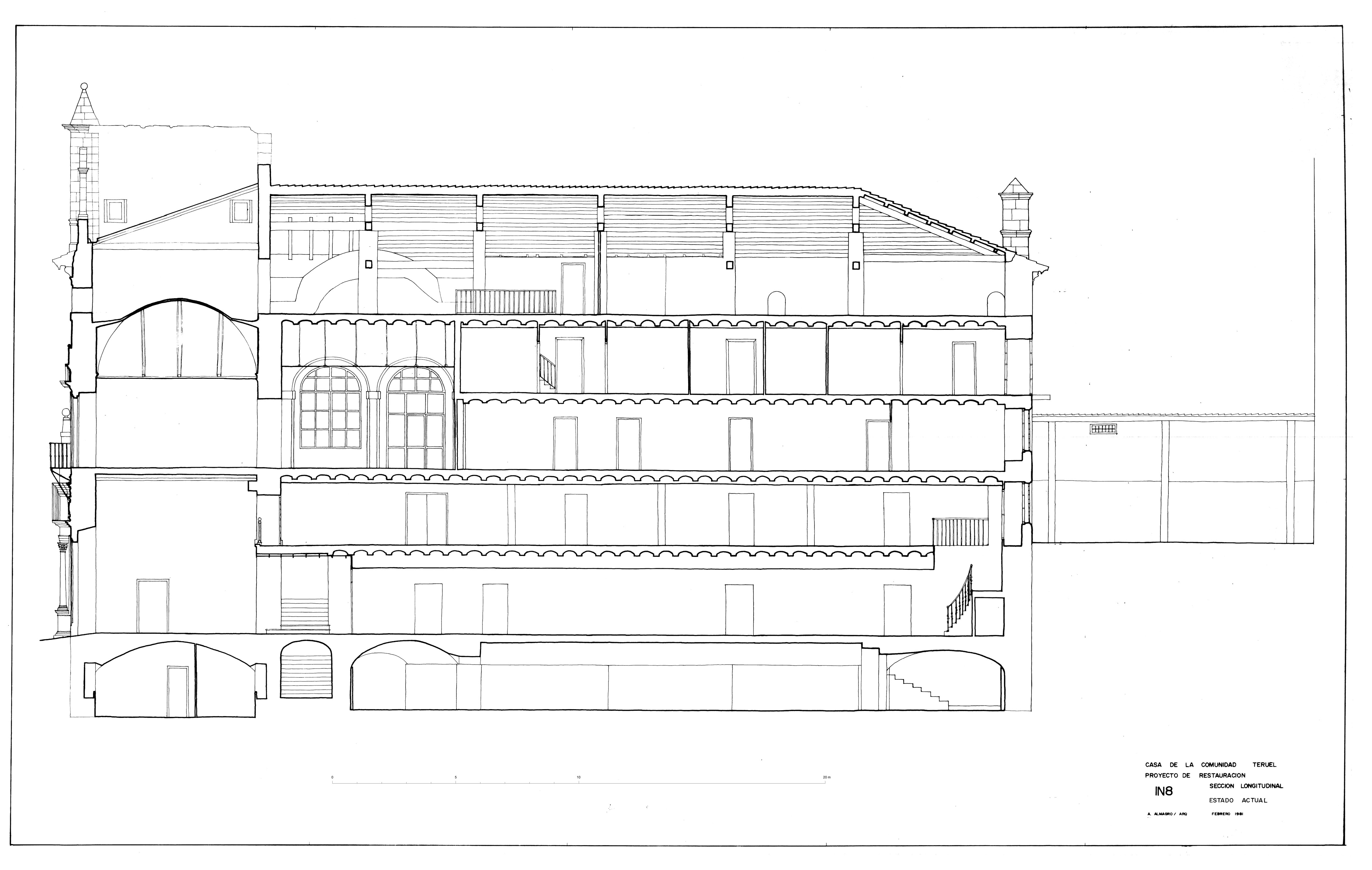 Sección longitudinal de la Casa de la Comunidad de Teruel. Estado inicial