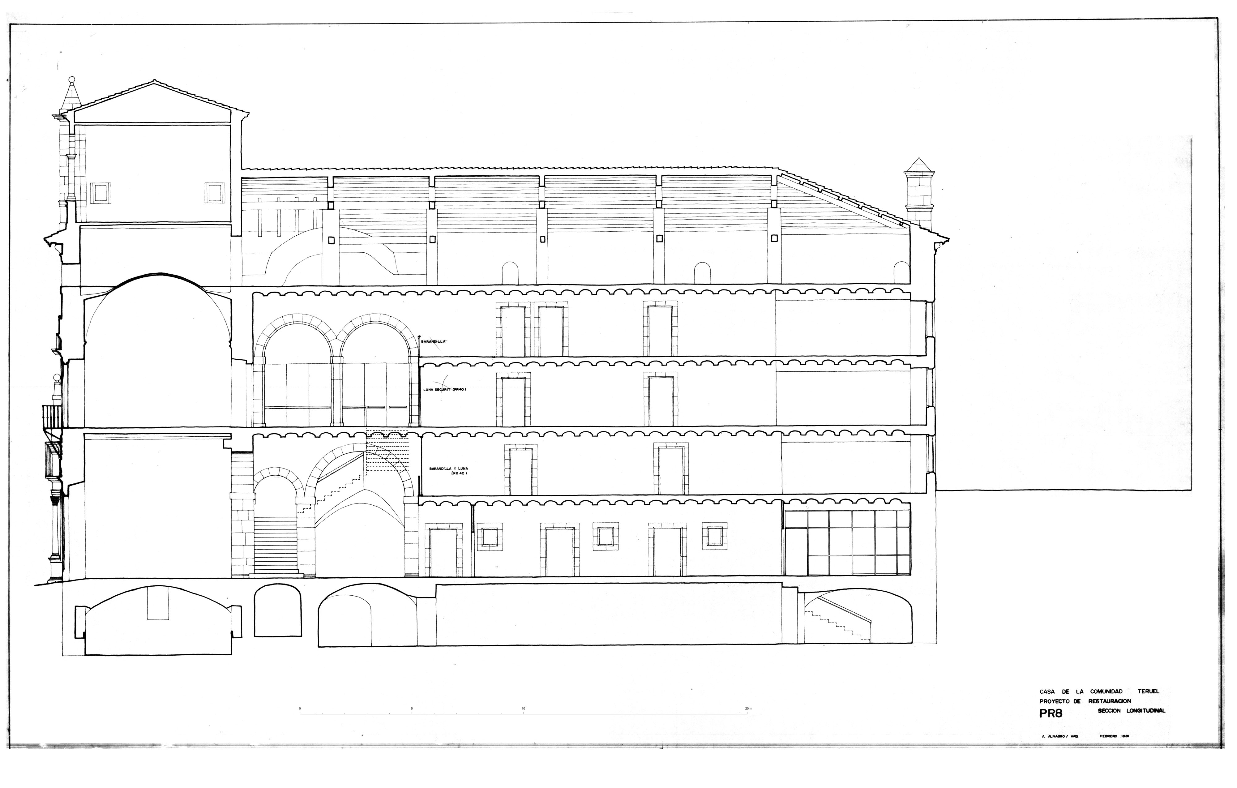 Sección longitudinal de la Casa de la Comunidad de Teruel. Estado restaurado