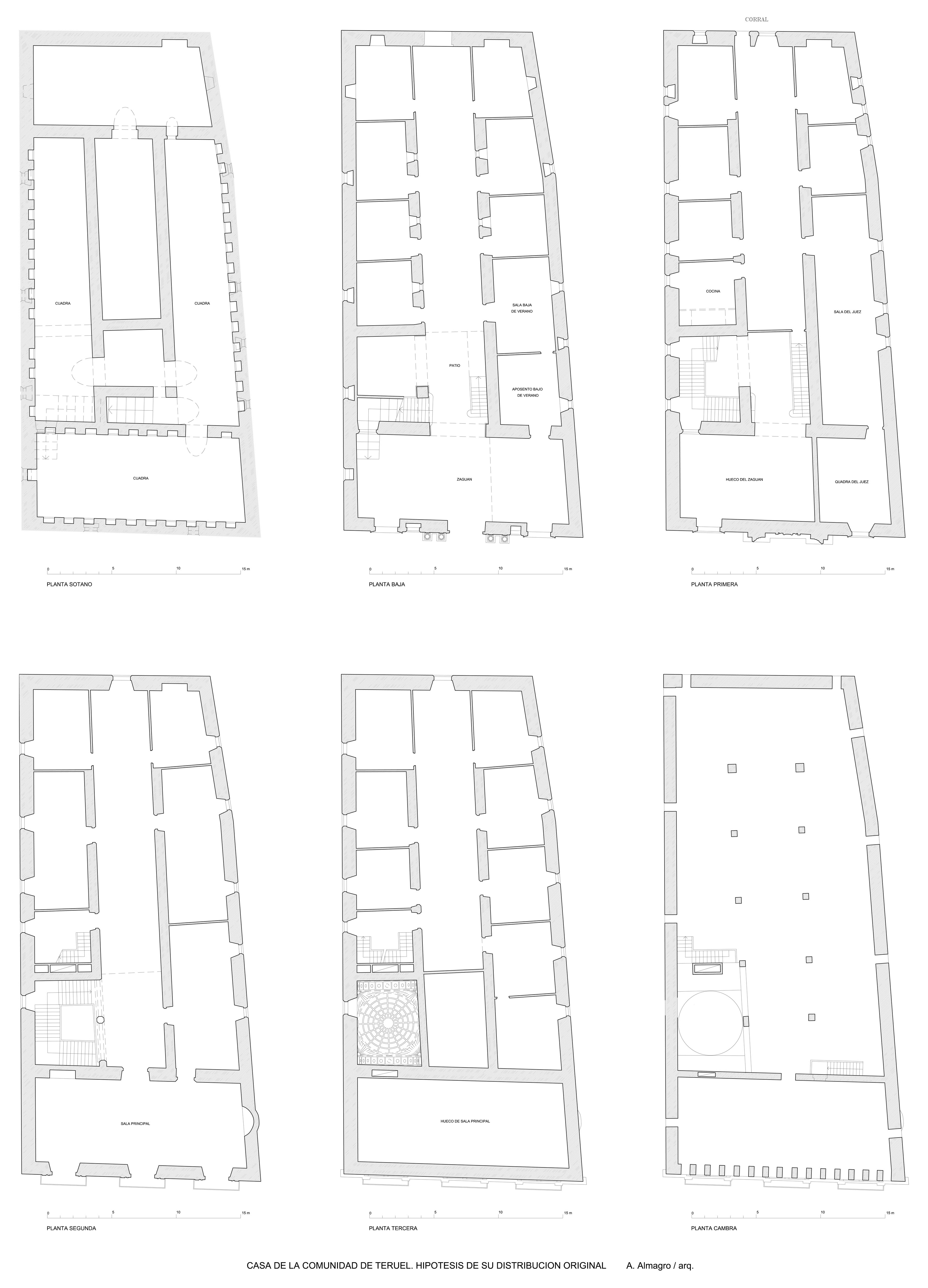 Plantas originales hipotéticas de la Casa de la Comunidad de Teruel