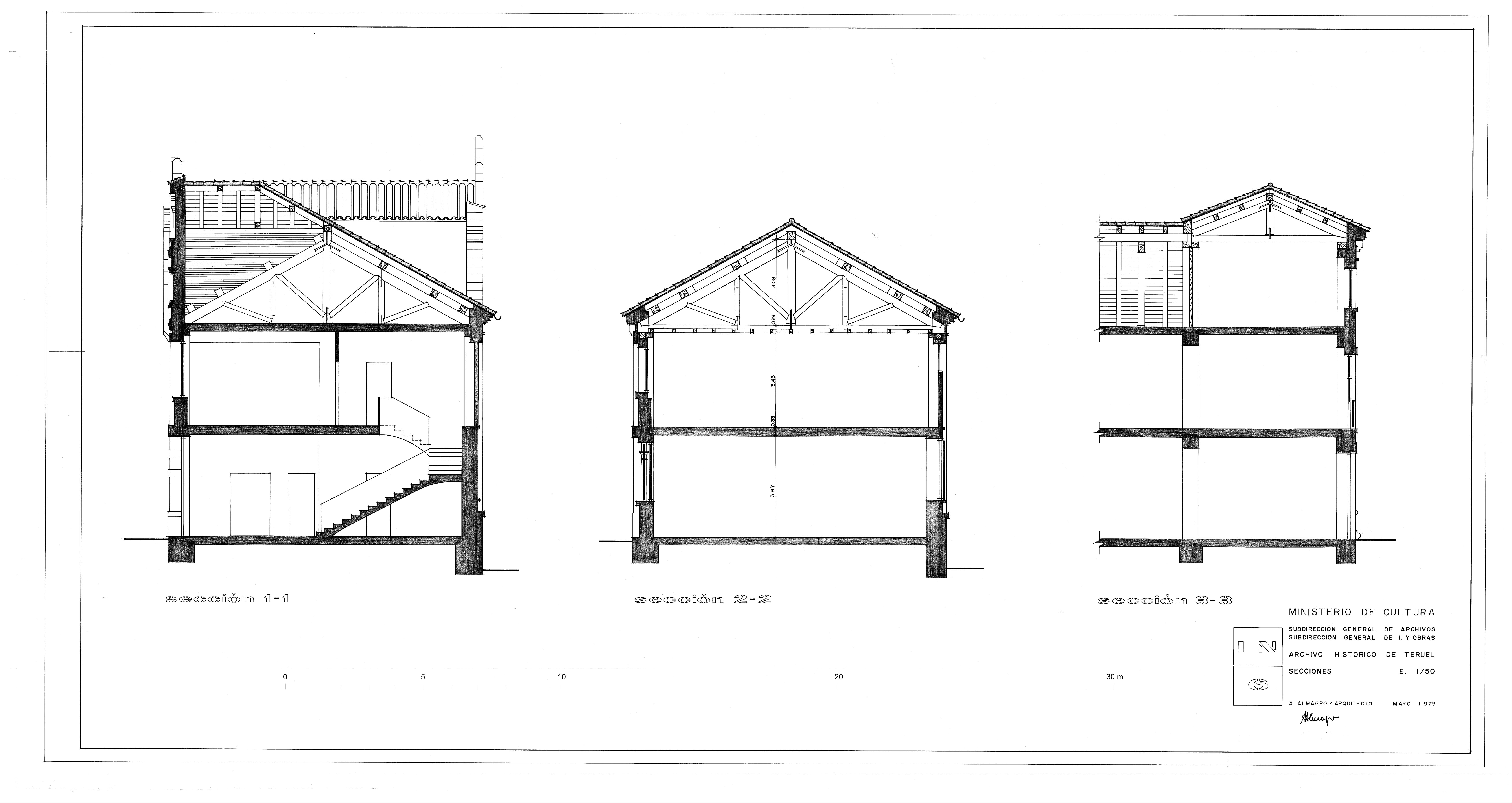 Secciones transversales de las Escuelas del Arrabal de Teruel
