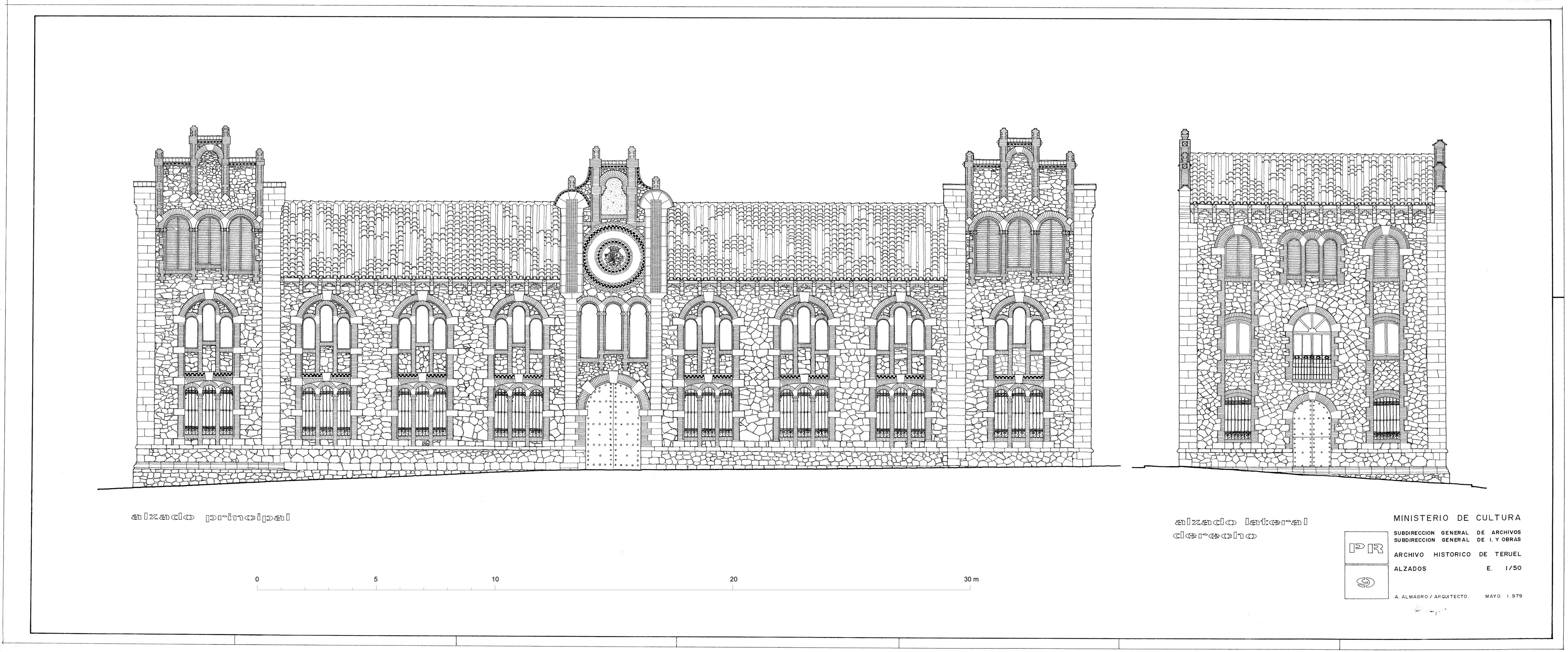 Alzado principal y lateral derecho del Archivo Histórico Provincial de Teruel
