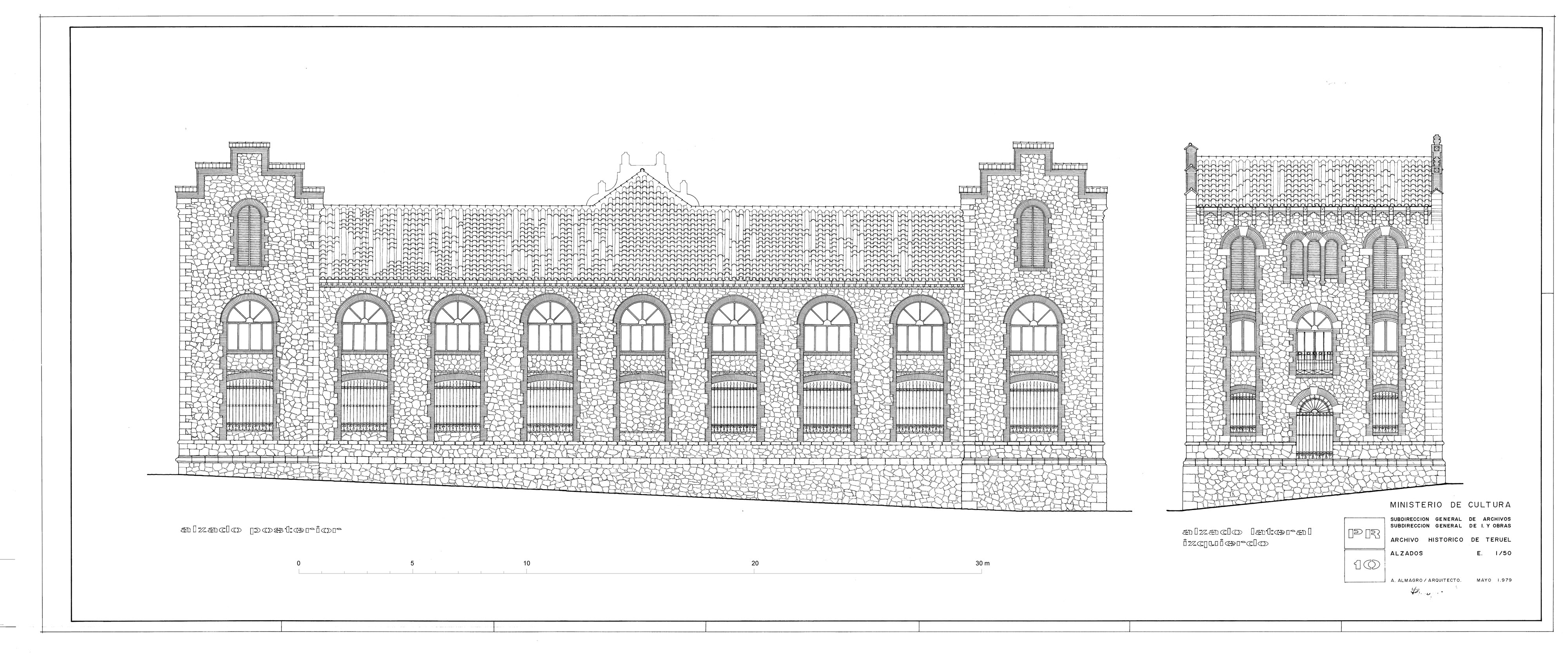 Alzado posterior y lateral izquierdo del Archivo Histórico Provincial de Teruel