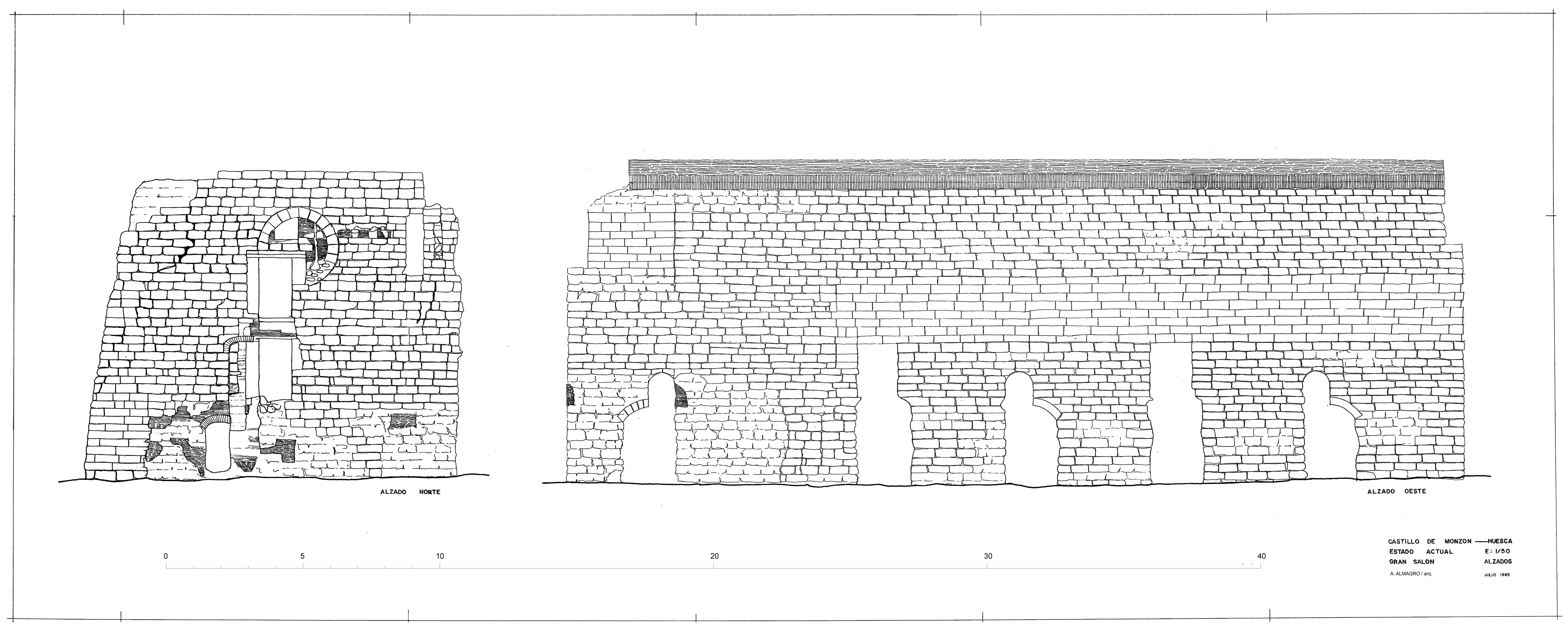 Alzados oeste y norte del gran salón del Castillo de Monzón (Huesca) - Estado inicial