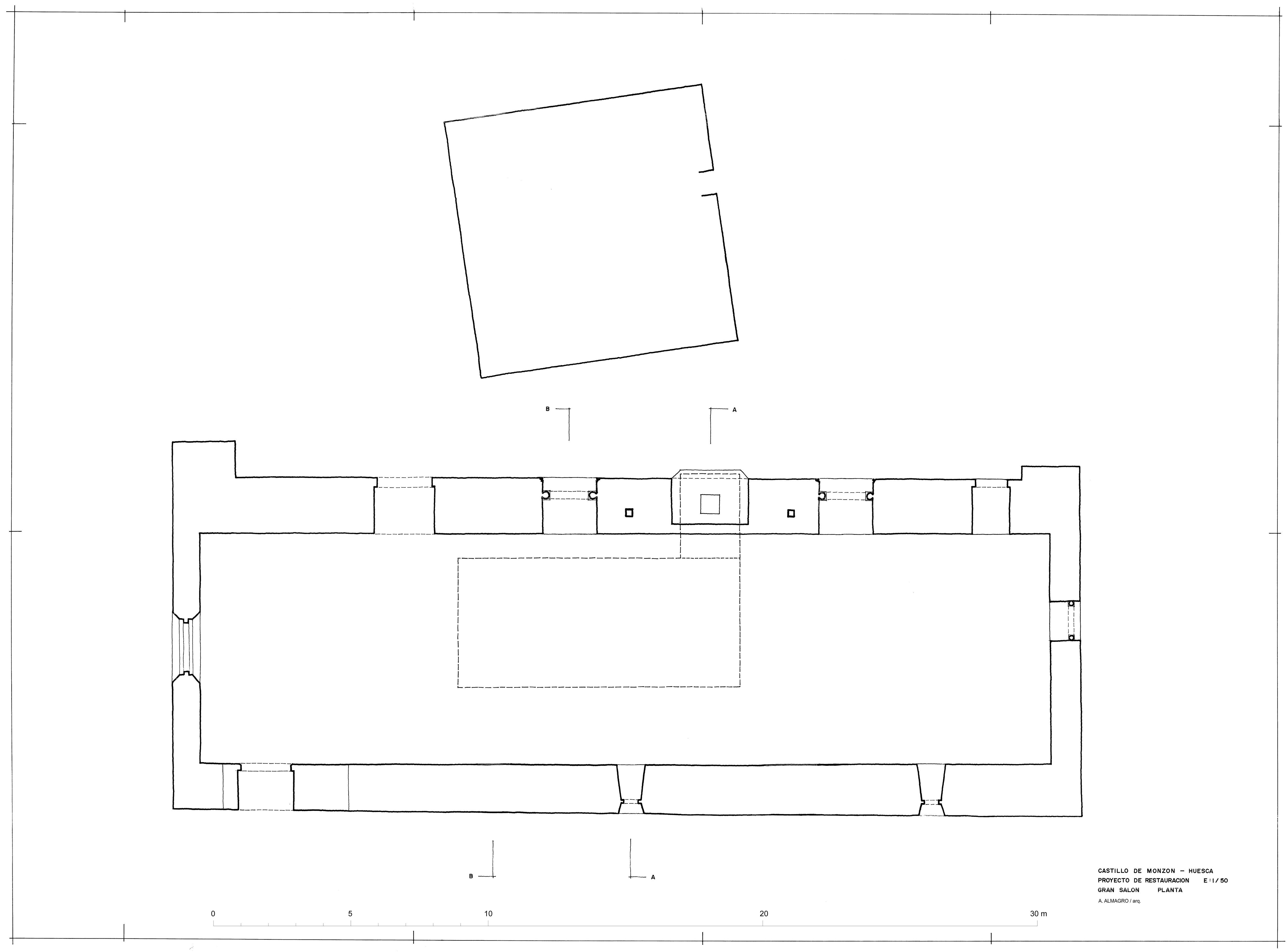 Planta del gran salón del Castillo de Monzón (Huesca) - Estado restaurado