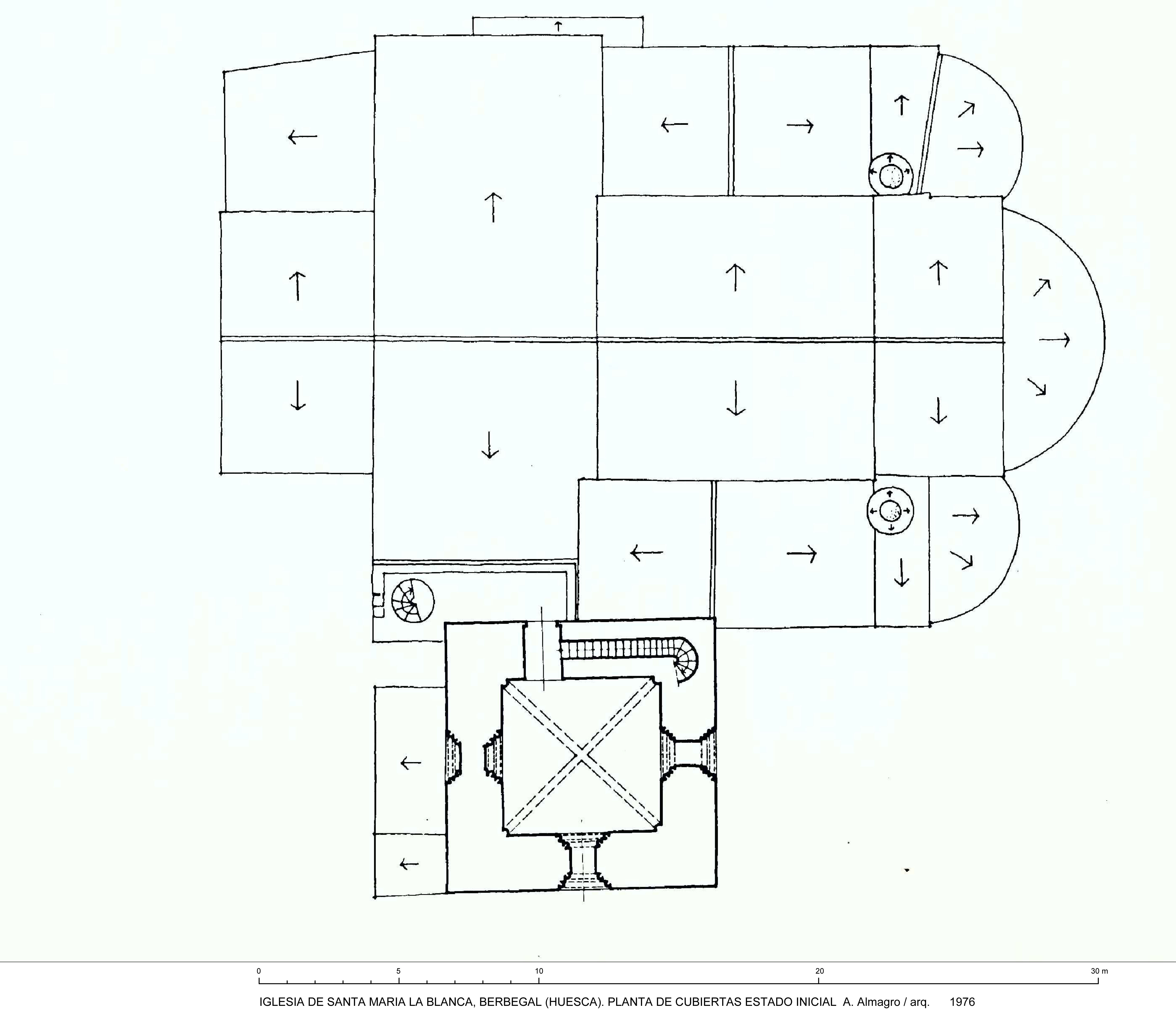 Planta de cubiertas de la iglesia de Santa María la Blanca de Berbegal (Huesca) - Estado inicial