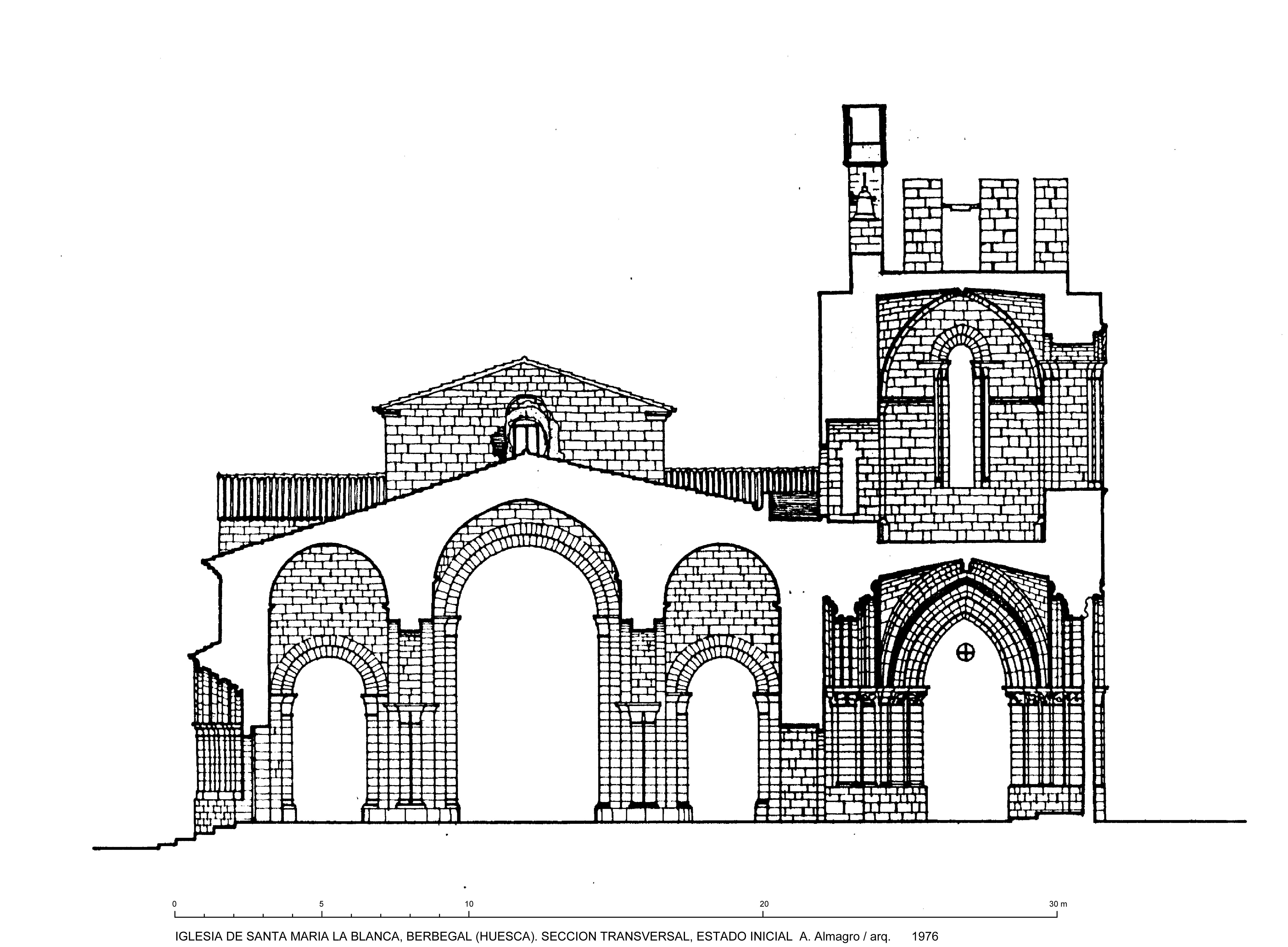 Sección transversal de la iglesia de Santa María la Blanca de Berbegal (Huesca) - Estado inicial