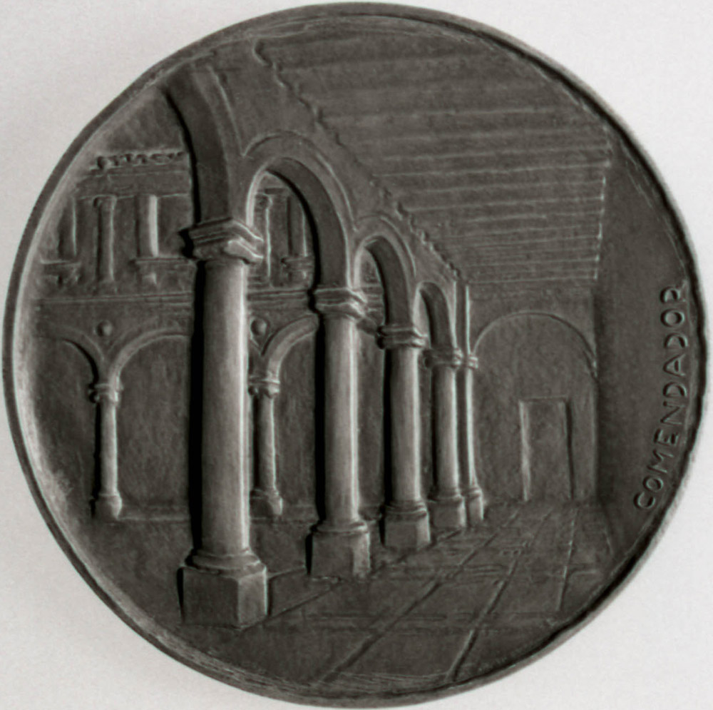 Firmado en el ángulo inferior izquierdo del anverso -sobre el busto- y en la parte central derecha del reverso: "COMENDADOR"