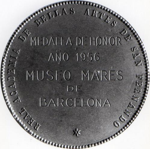 Reverso: "REAL ACADEMIA DE BELLAS ARTES DE SAN FERNANDO". "MEDALLA DE HONOR AÑO 1956