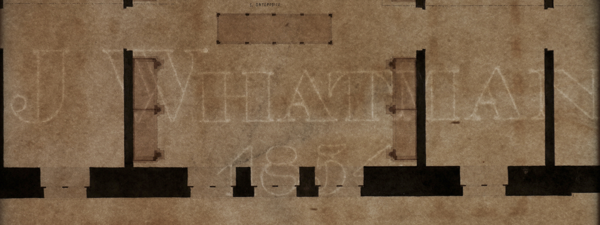 Fecha: 1832 • Nº Inventario: A-2612 • Medidas: 746 x 1063 mm. Escala gráfica de 50 metros (en italiano). • Técnica: Papel avitelado agarbanzado claro. Tinta y aguada gris, gris azulada y rosa.