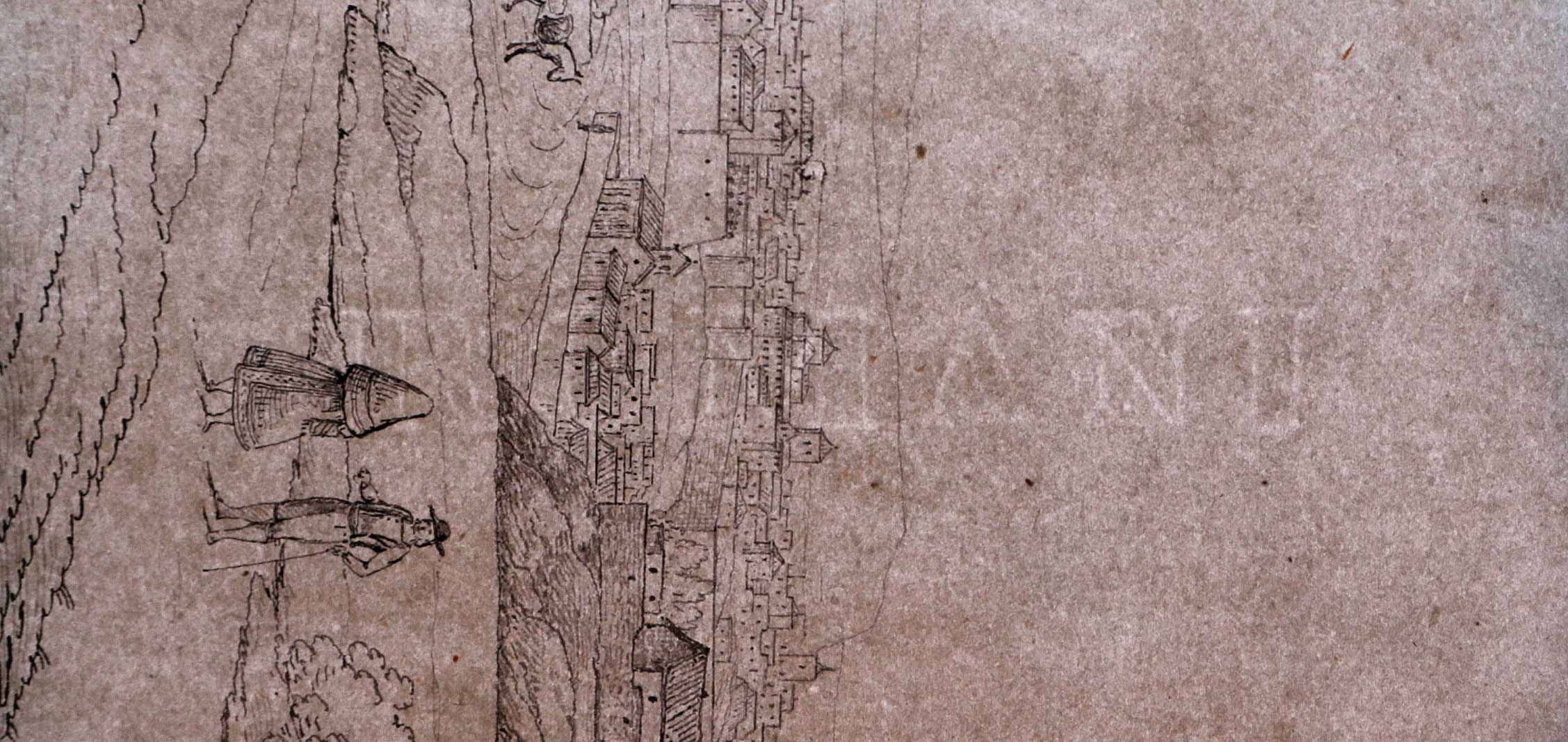Fecha: 1844 • Nº Inventario: MA-0812 • Medidas: 207 x 300 mm • Técnica: Papel avitelado ahuesado. Tinta negra y aguada amarilla, azul y gris azulada.