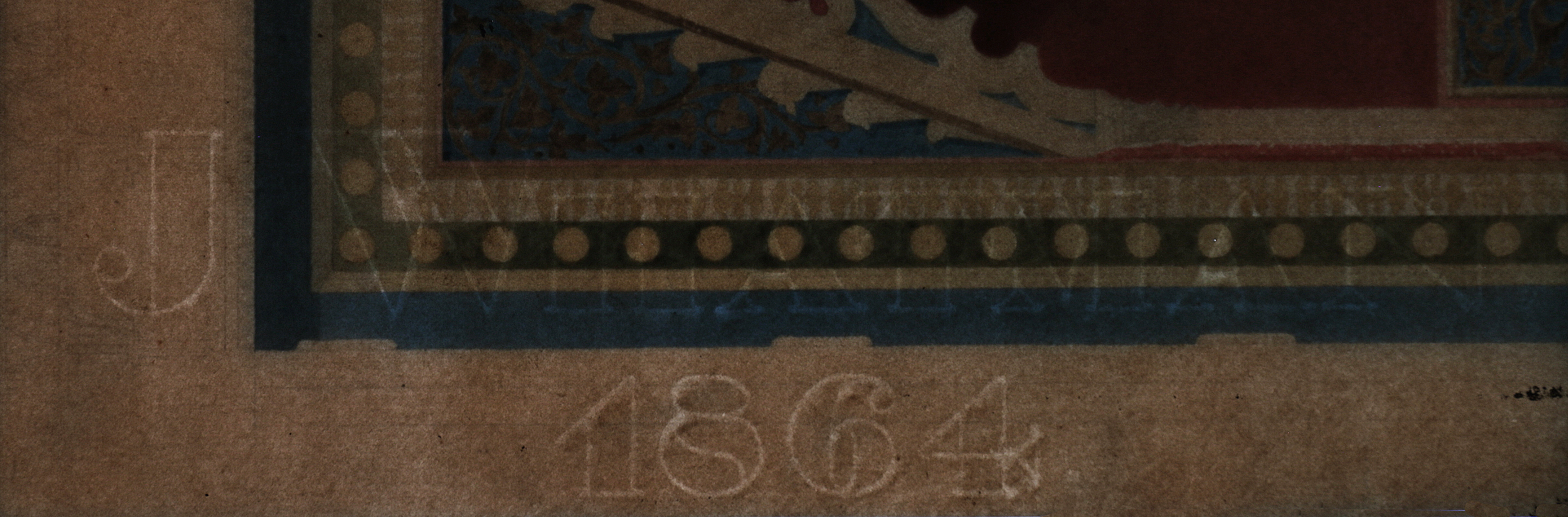 Fecha: ca. 1875-1876 • Nº Inventario: MA-0009 • Medidas: 348 x 486 mm • Técnica: Papel avitelado agarbanzado claro. Lápiz, temple dorado y aguada roja, verde, negra y marrón.