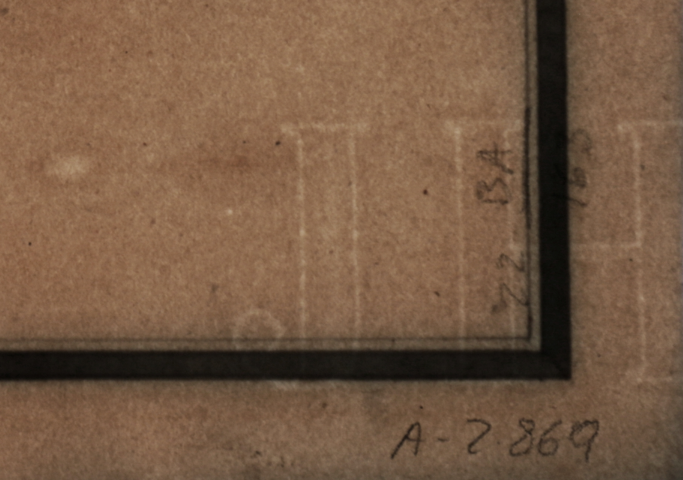 Fecha: 1830 • Nº Inventario: A-1254 • Medidas: 632 x 878 mm. Sin escala gráfica. • Técnica: Papel avitelado agarbanzado claro. Tinta y aguada gris, gris azulada y rosa.