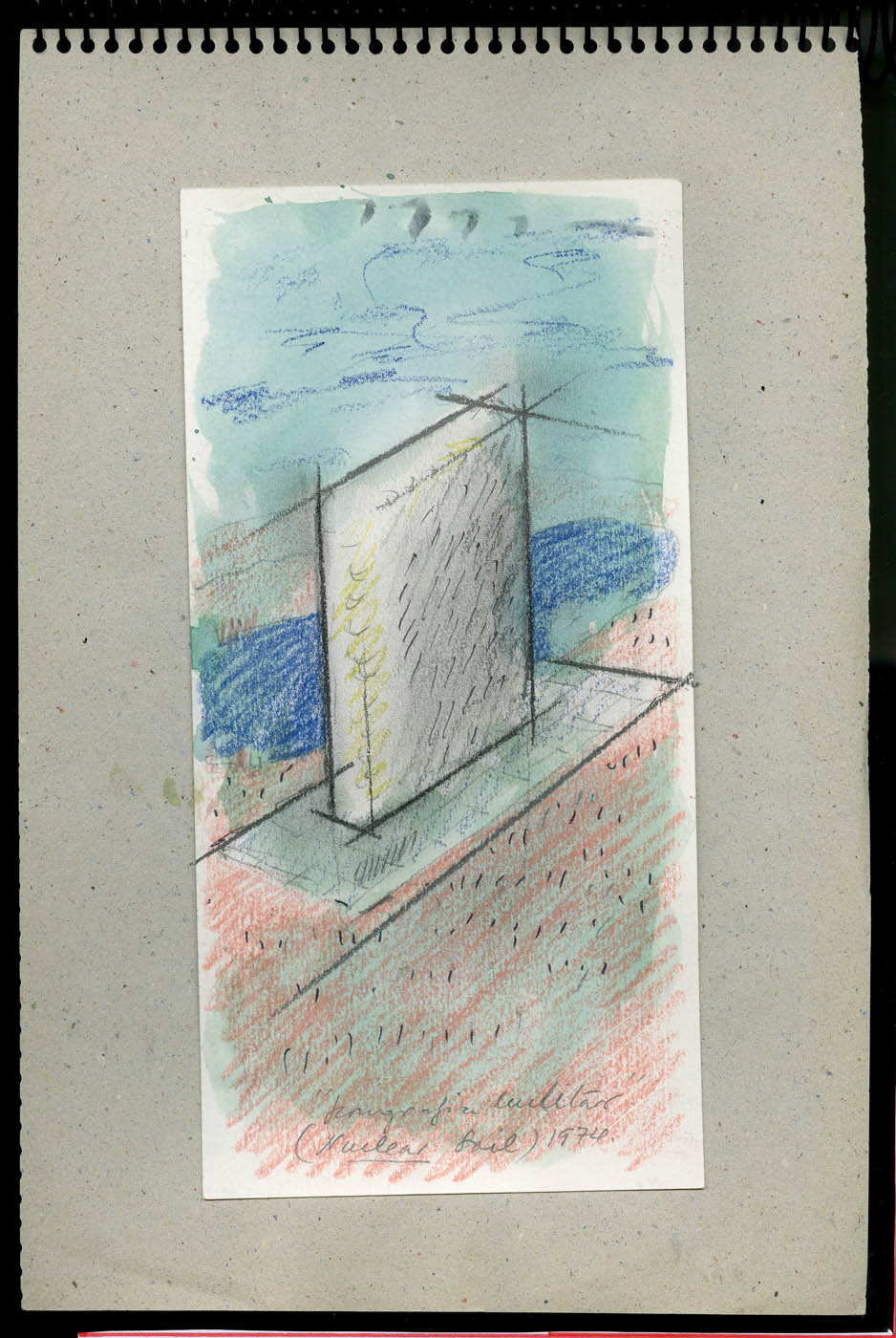 Anotaciones: En la parte inferior, anotación manuscrita a lápiz negro: “Iconografía militar” (Nuclear ¿Soil?) 1974”.