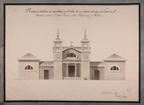 Fecha: 1830 • Nº Inventario: A-3882 • Dimensiones: 532 x 717 mm; escala gráfica en pies castellanos. • Técnica: Papel verjurado ahuesado. Tinta y aguada gris, rosa y marrón.