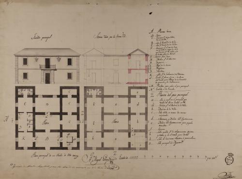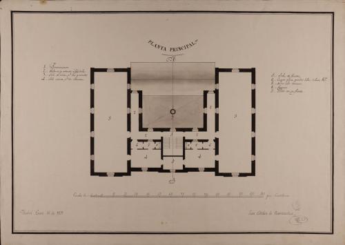 Fecha: 1833 • Nº Inventario: A-0711 • Medidas: 491 x 665 mm. Escala gráfica de 90 palmos catalanes. • Técnica: Papel agarbanzado claro. Tinta y aguada gris y rosa.