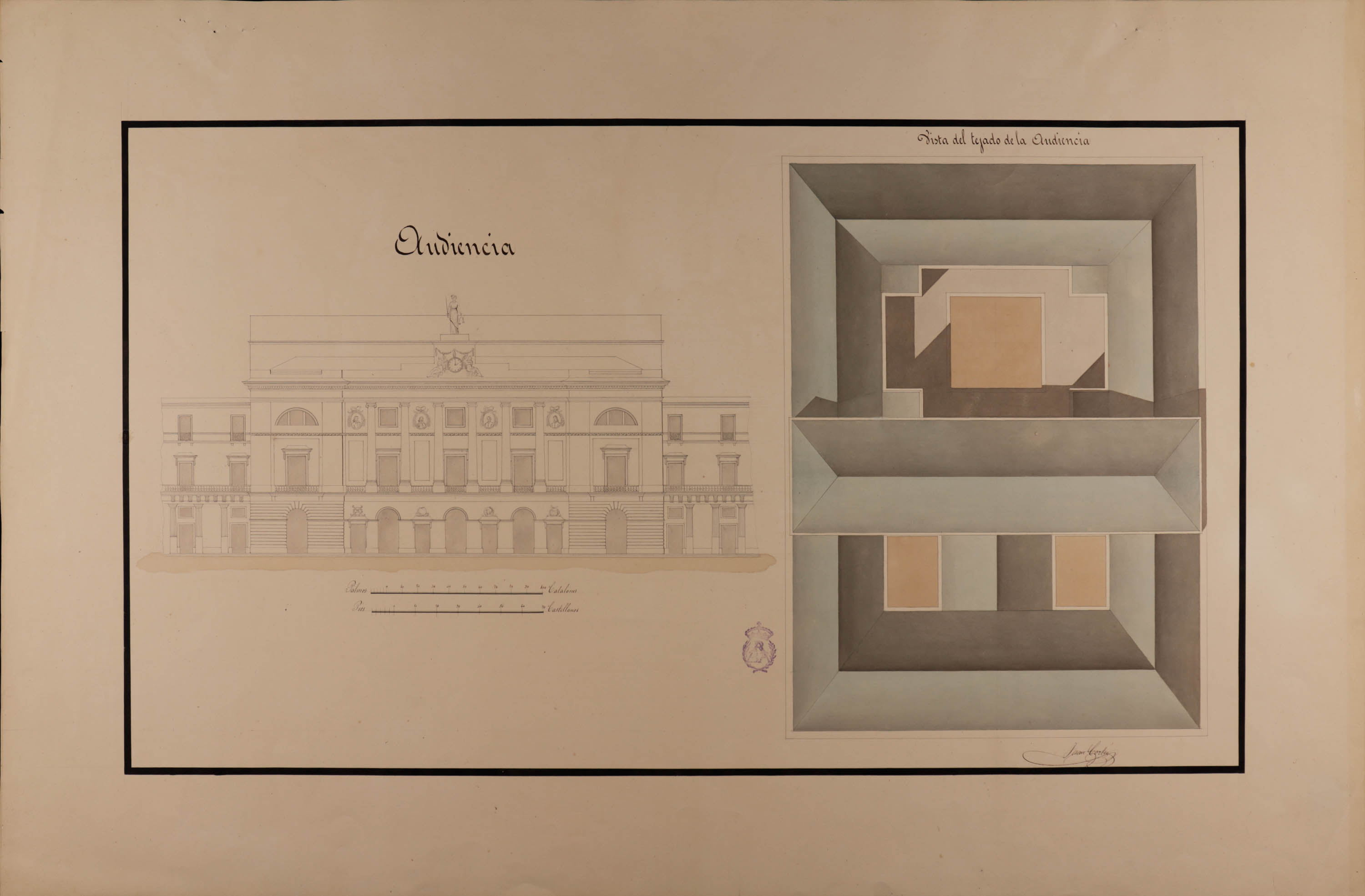 Fecha: 1768 • Nº Inventario: A-0925 • Medidas: 531 x 750 mm • Técnica: Papel verjurado agarbanzado claro. Tinta y aguada gris.