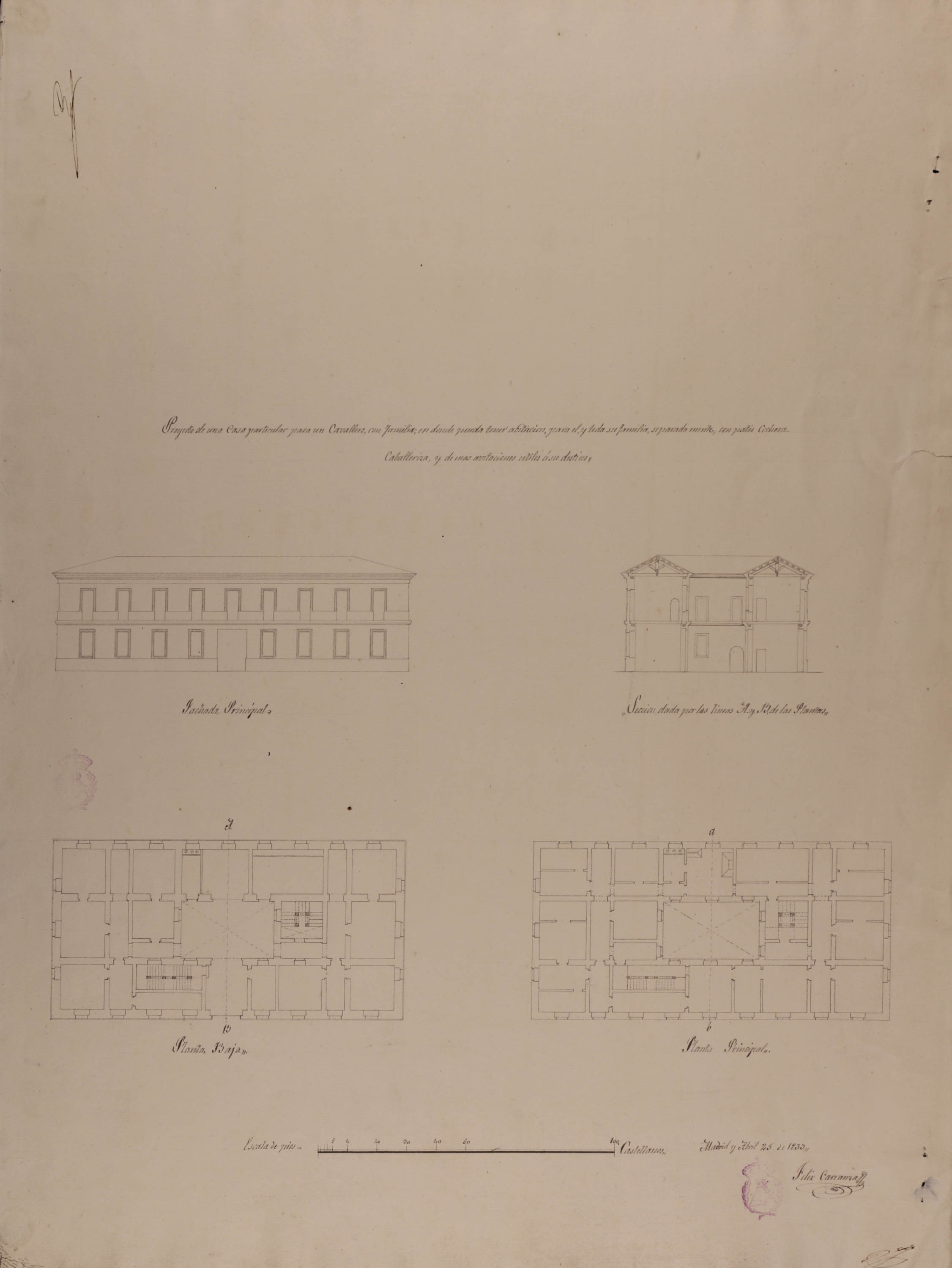 Fecha: 1833 • Nº Inventario: A-1503 • Medidas: 494 x 662 mm. Escala gráfica. • Técnica: Papel verjurado agarbanzado claro. Tinta y aguada gris y rosa.