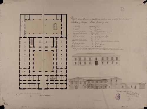 Fecha: 1845 • Nº Inventario: A-2142 • Medidas: 767 z 548 mm. Escala gráfica en pies castellanos. • Técnica: Papel verjurado agarbanzado claro. Tinta, lápiz y aguada gris.