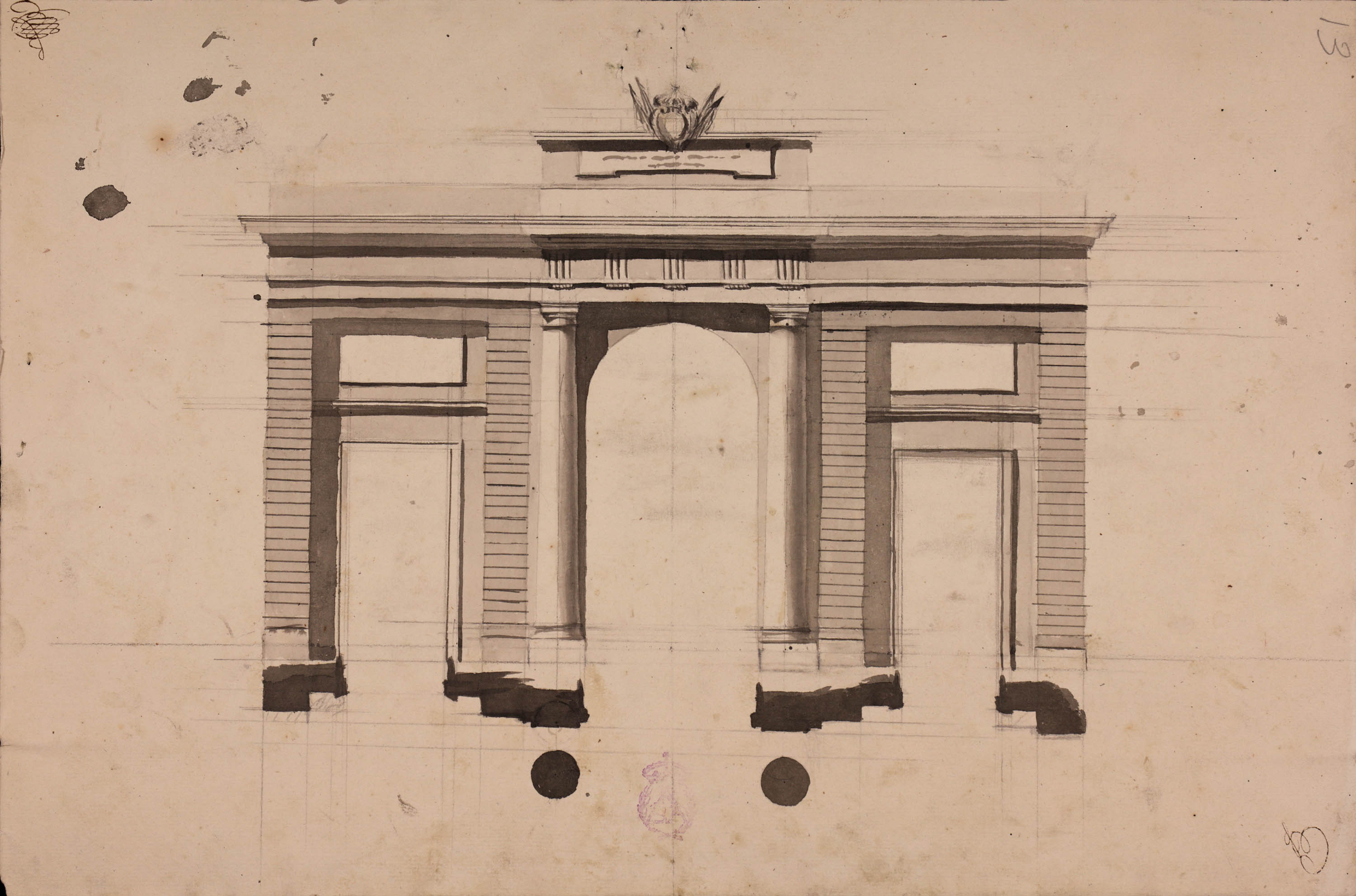 Fecha: 1805 • Nº Inventario: A-3460 • Medidas: 335 x 512 mm; escala gráfica en módulos. • Técnica: Papel verjurado ahuesado. Lápiz, tinta y aguada gris.