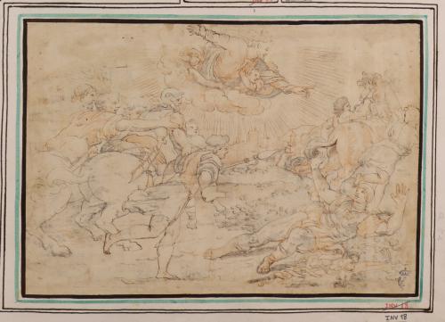 Nº Inventario: D-0025 • Medidas: 512 x 345 mm • Técnica: Papel verjurado verde, preparado a lápiz, aguada parda y albayalde; repasados los contornos para calcar.