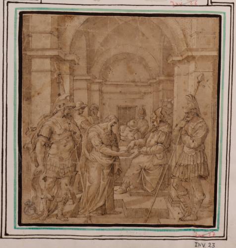 Nº Inventario: D-0023 • Medidas: 198 x 179 mm • Técnica: Papel verjurado agarbanzado oscuro. Tinta negra y parda y aguada parda.